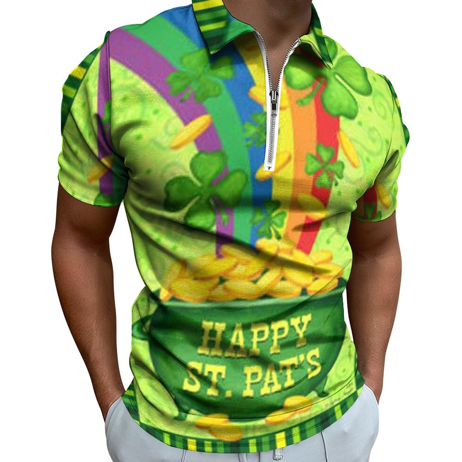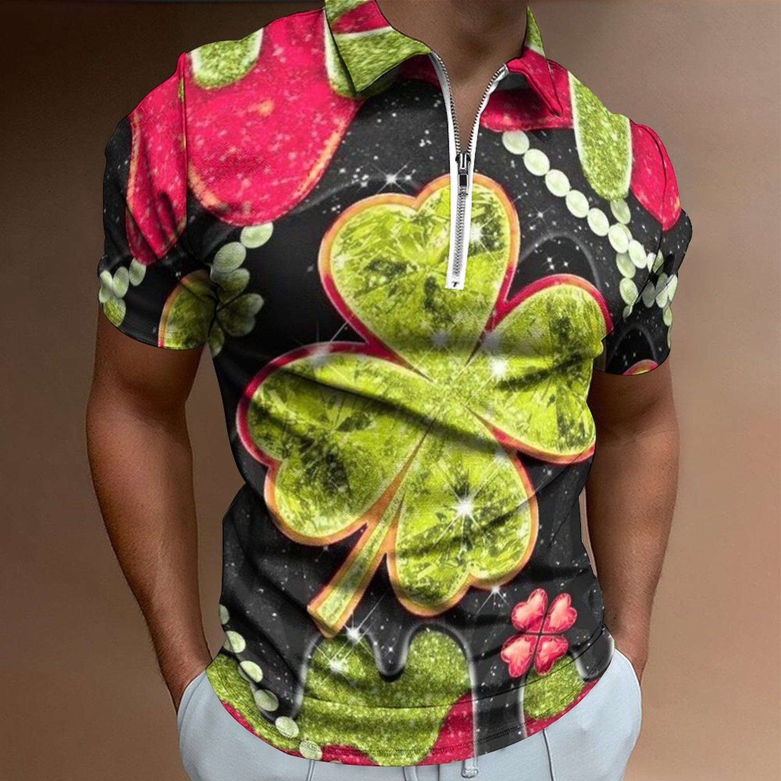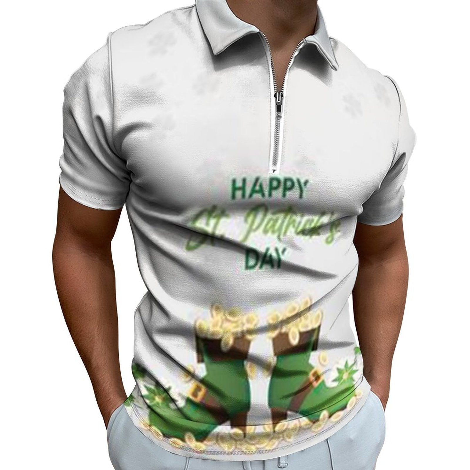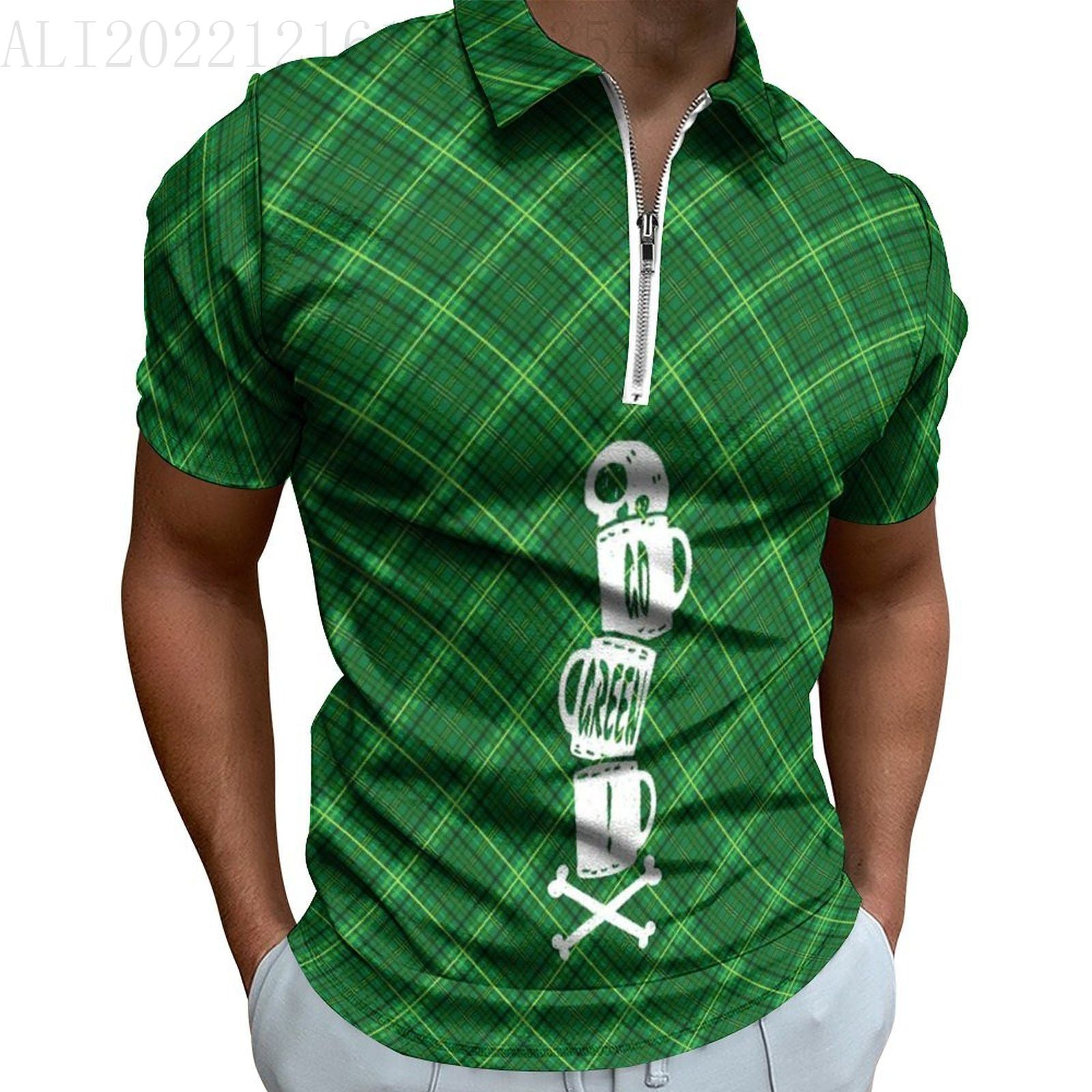• Digital 3D Print Holiday Beach Lapel Zipper Short Sleeve Polo Shirt T-shirt