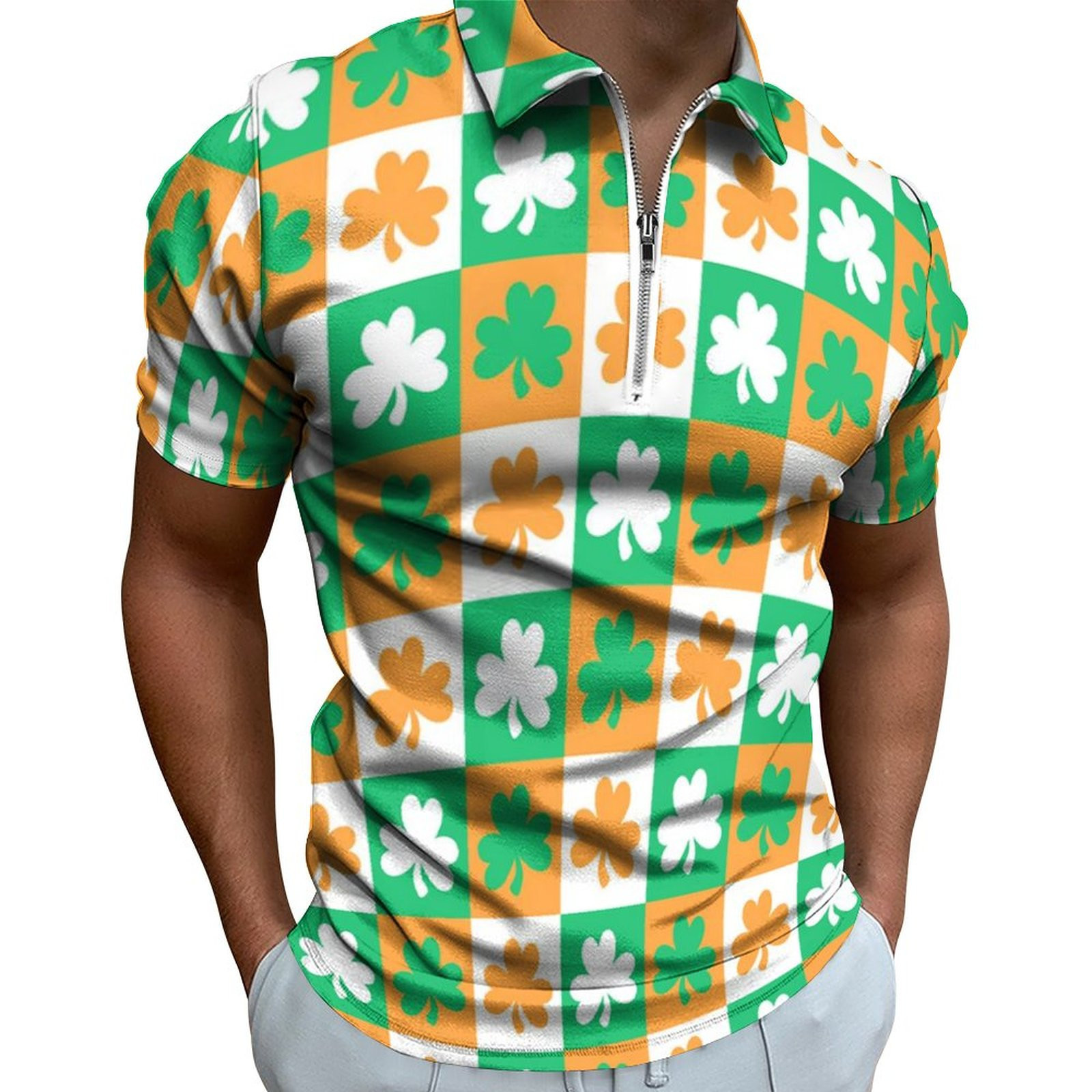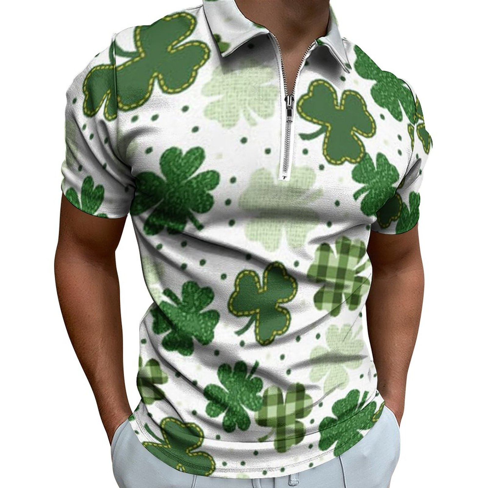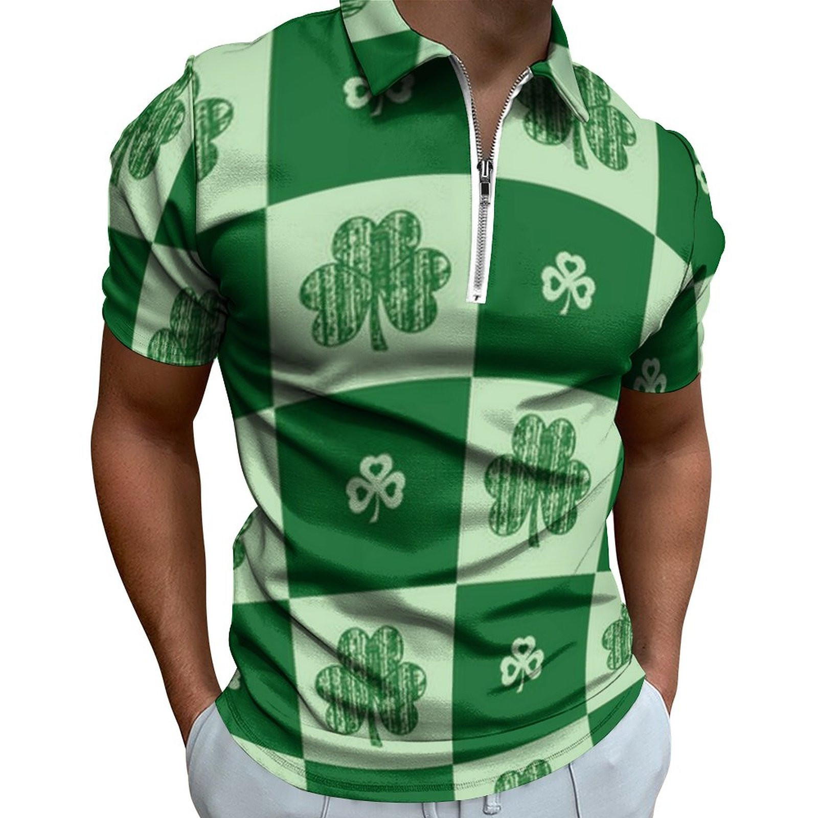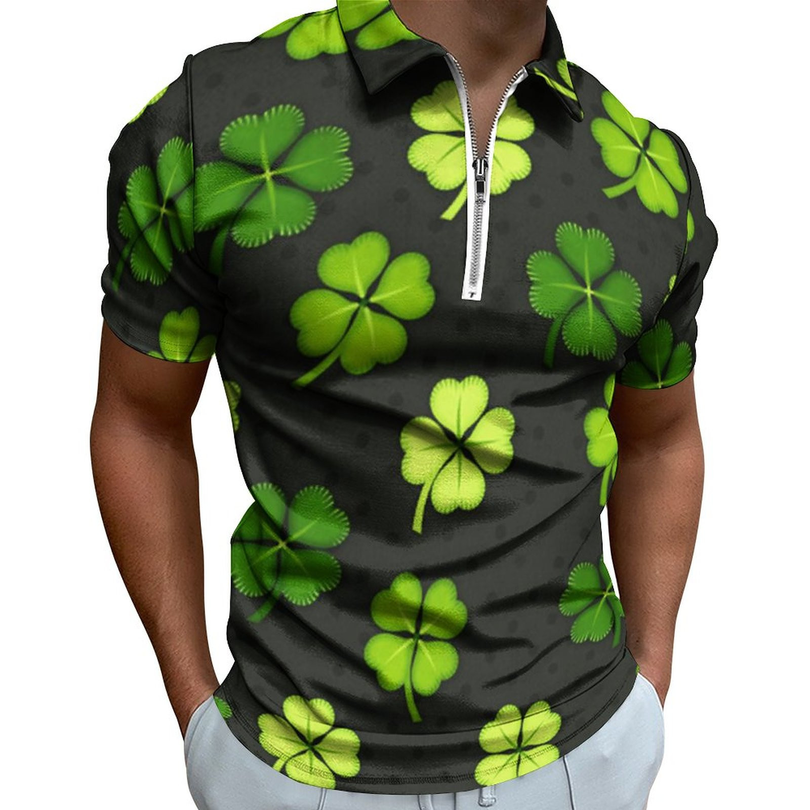 • Digital 3D Print Holiday Beach Lapel Zipper Short Sleeve Polo Shirt T-shirt