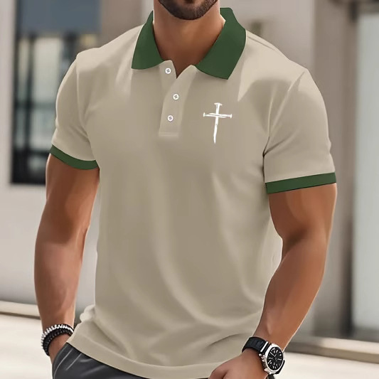 Polyester Printed Solid Color Polo Shirt Short Sleeve Men