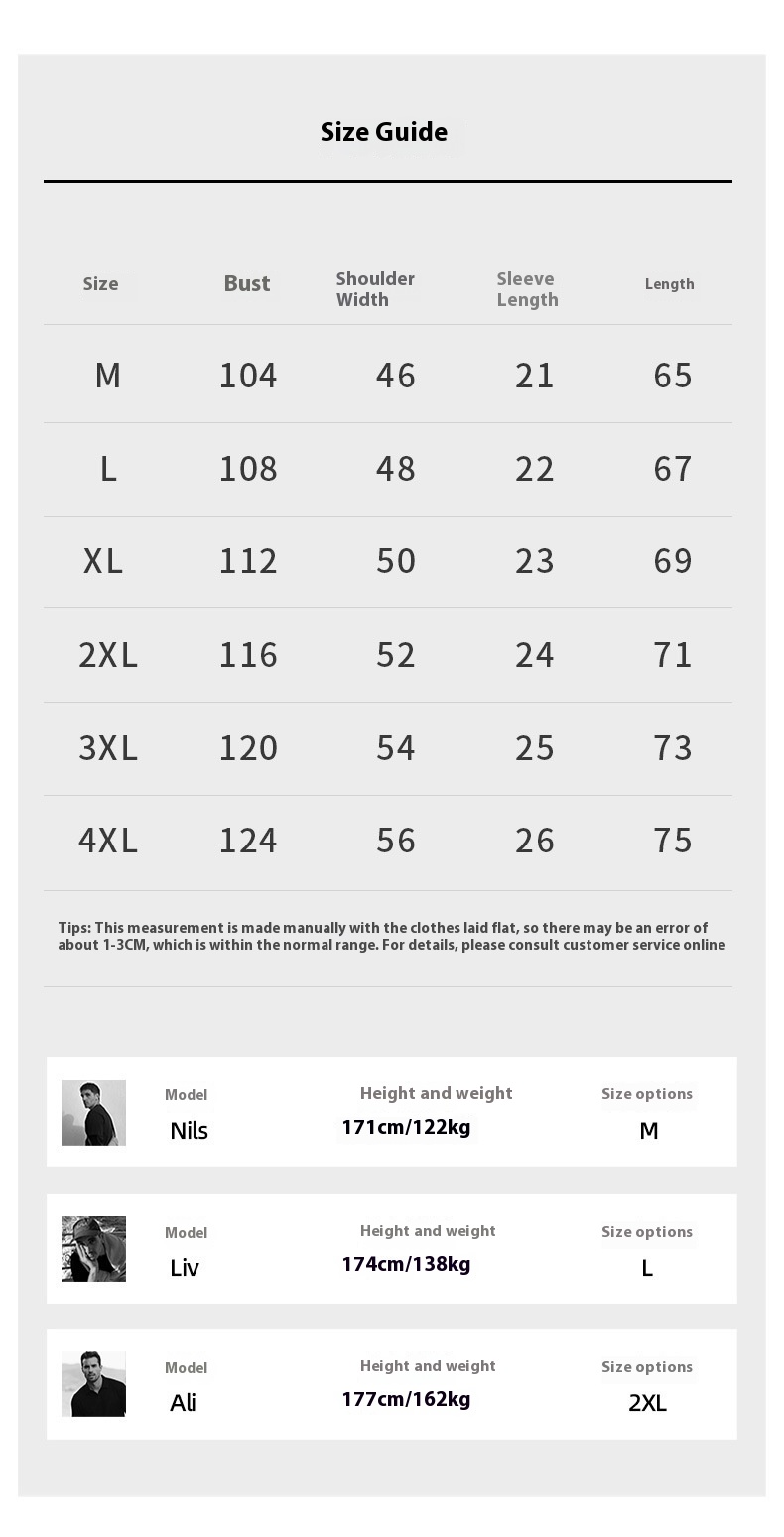 Size: M (170/92A)(recommend 50.00kg-57.50kg,L (175/96A)(recommend 58.00kg-65.00kg,XL (180/100A)) (Recommended 65.50kg-72.50kg,2XL (185/104A)(recommended 73.00kg-80.00kg,3XL (190/108A)(recommended 80.50kg-85.00kg,4XL (195/112A)(recommend 85.50kg-92.50kg