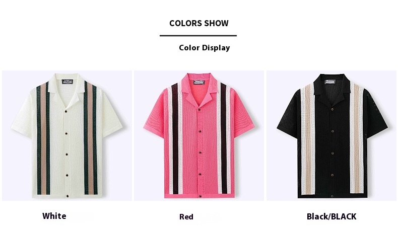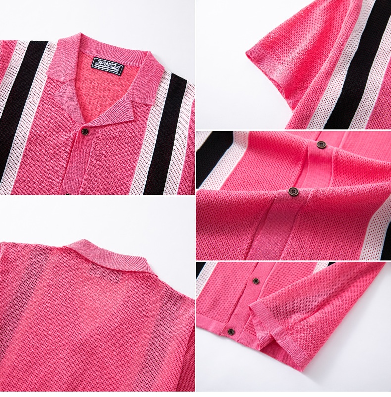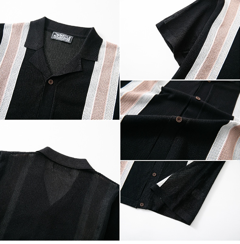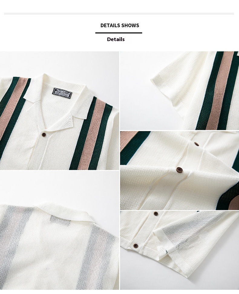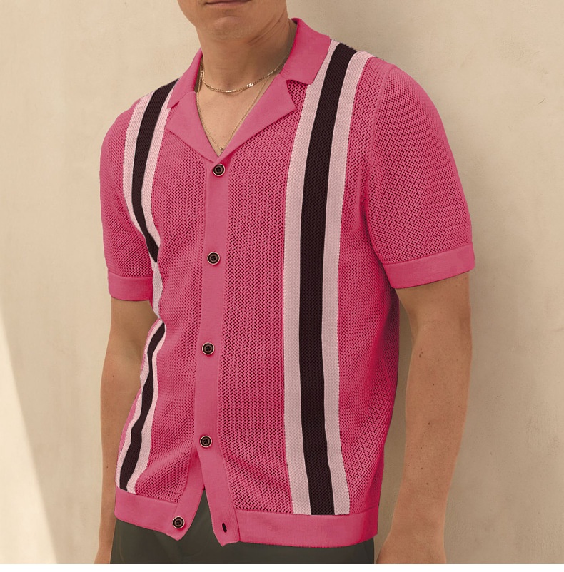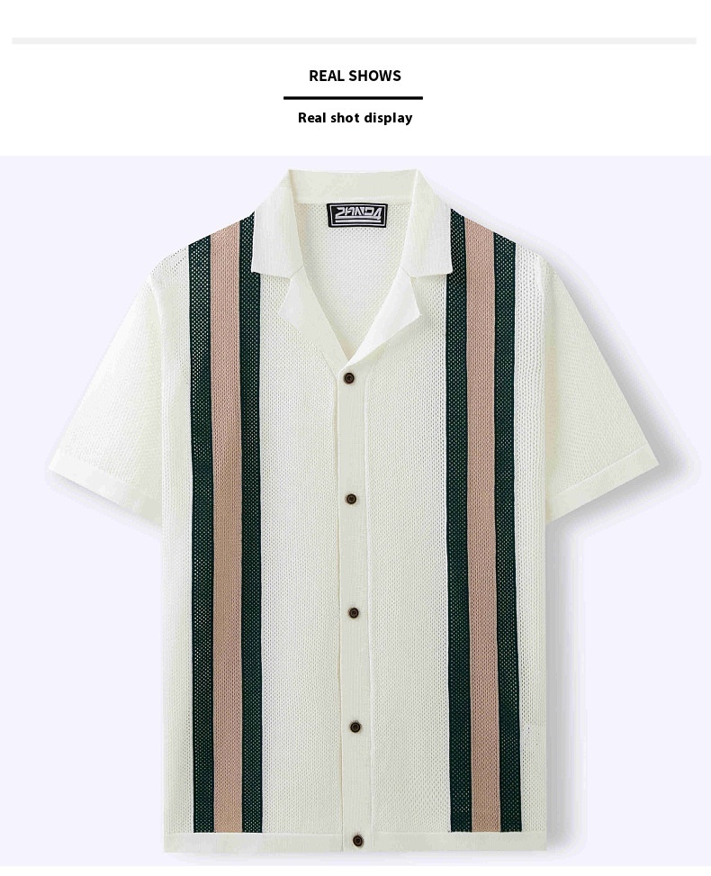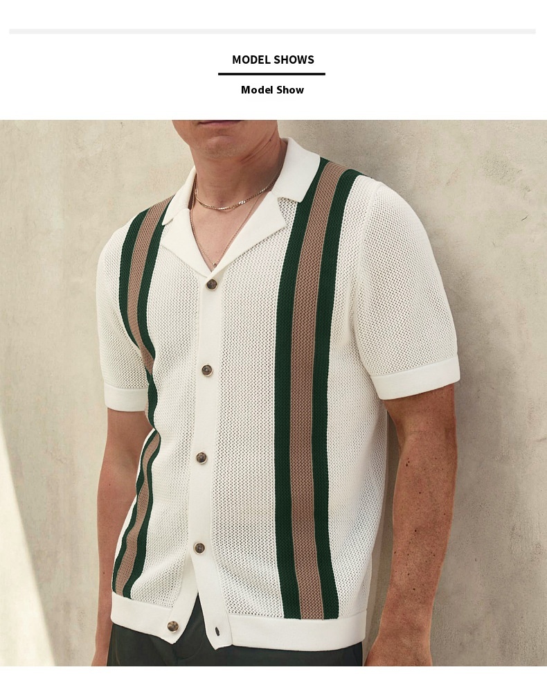 • Men's Fashion Cuban Collar Short Sleeve Knitted Cardigan