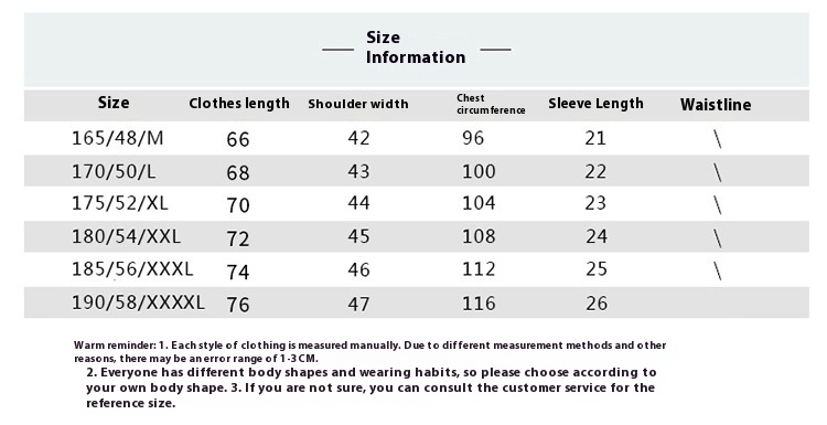Size: 165/105, 170/110, 175/115, 180/120, 185/125, 190/130