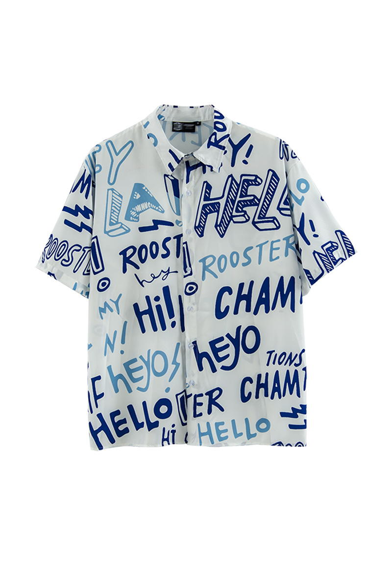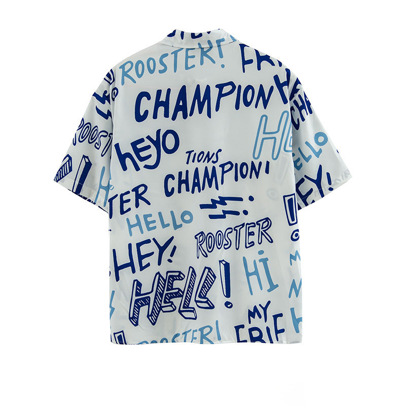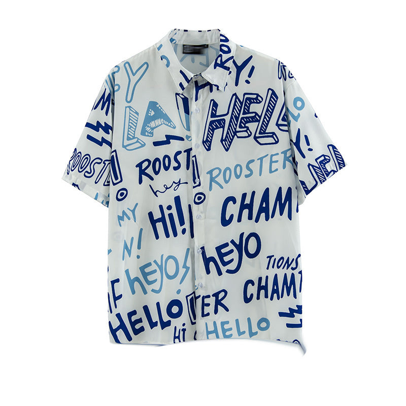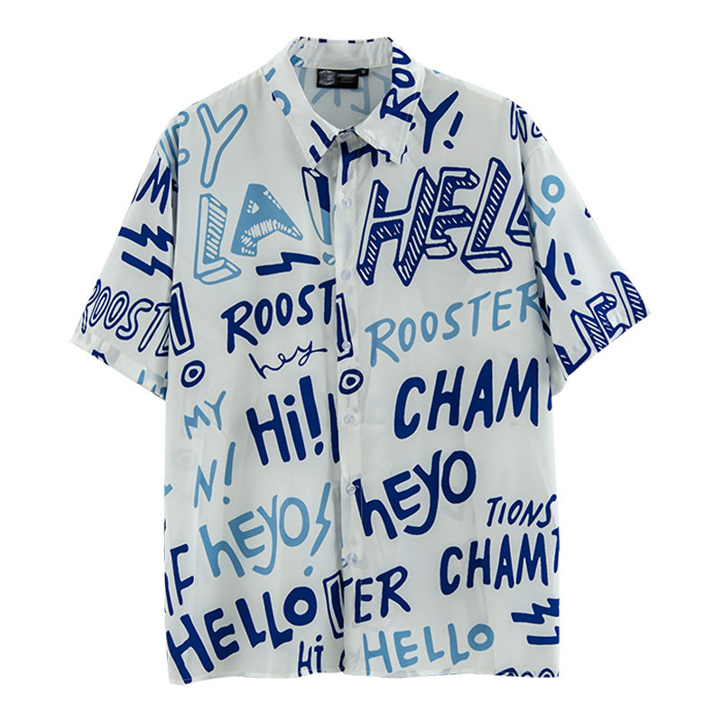American Street Letter Doodle Flower Shirt Men'S Short Sleeve