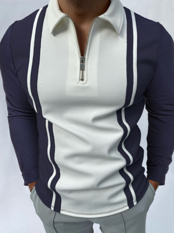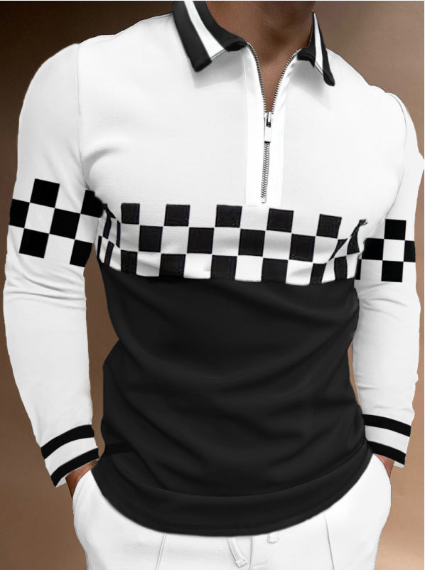 Printed Long-sleeved Polo Shirt Zipper Men's T-shirt