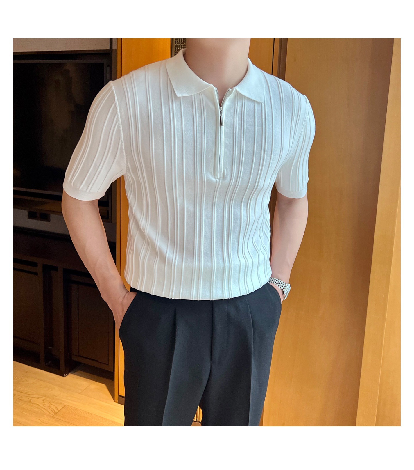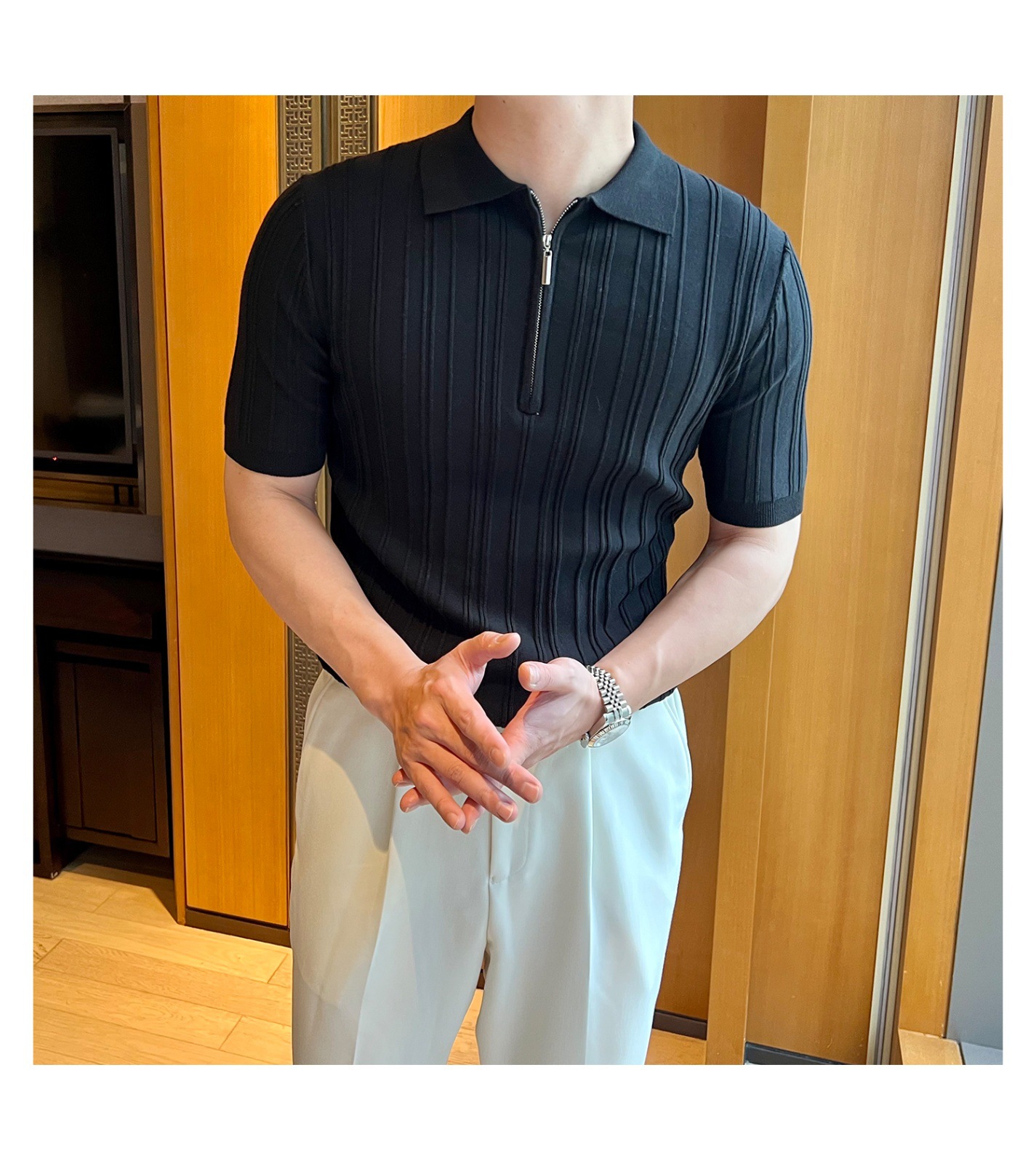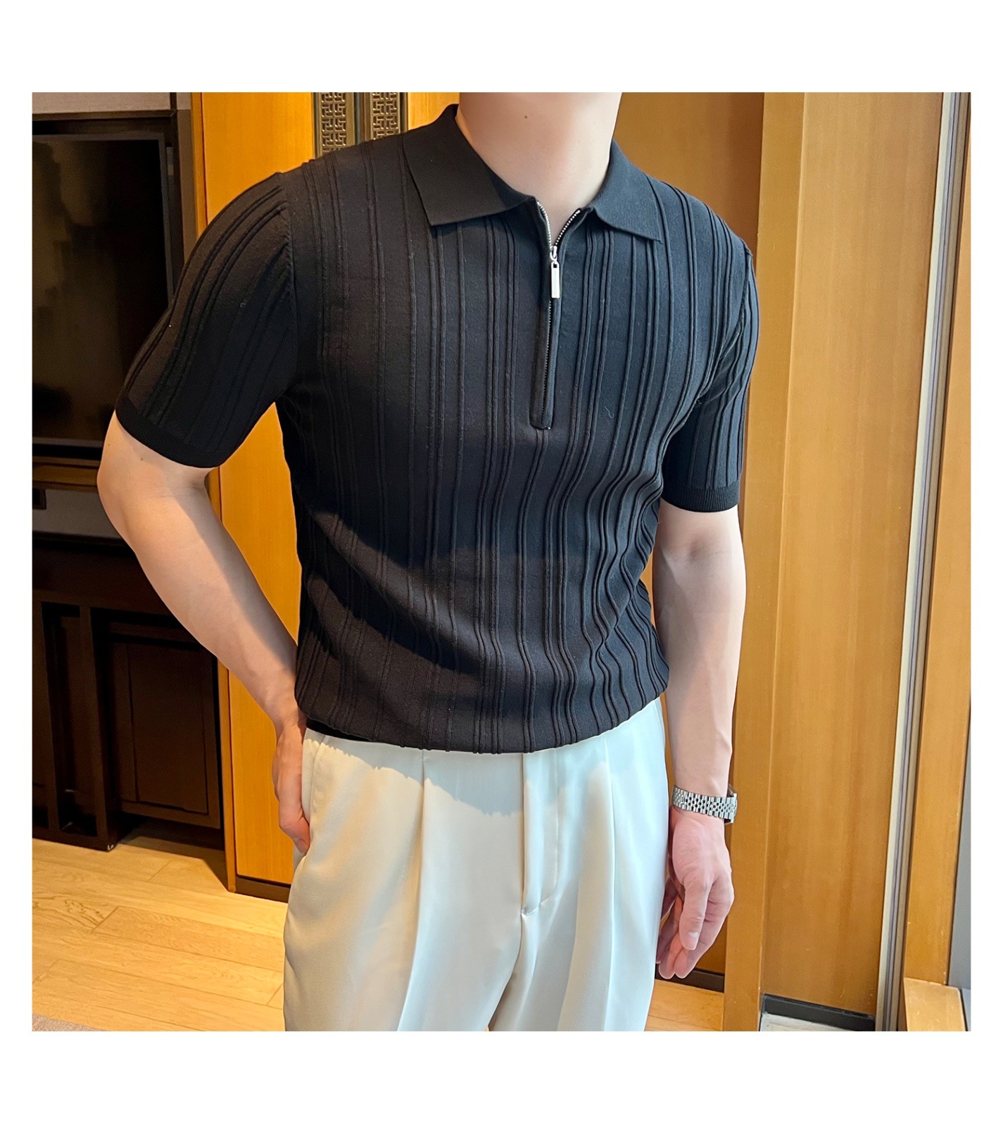 Casual Zipper Short Sleeve Men's Retro Elegant Jacquard Lapel