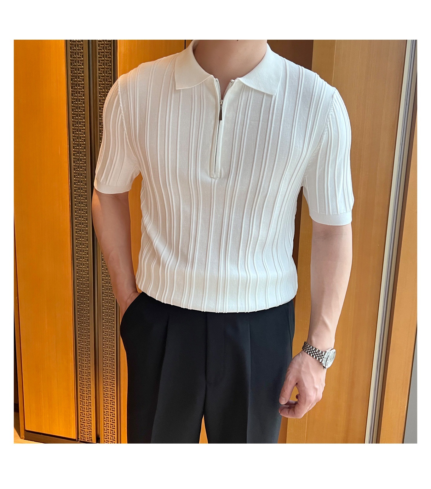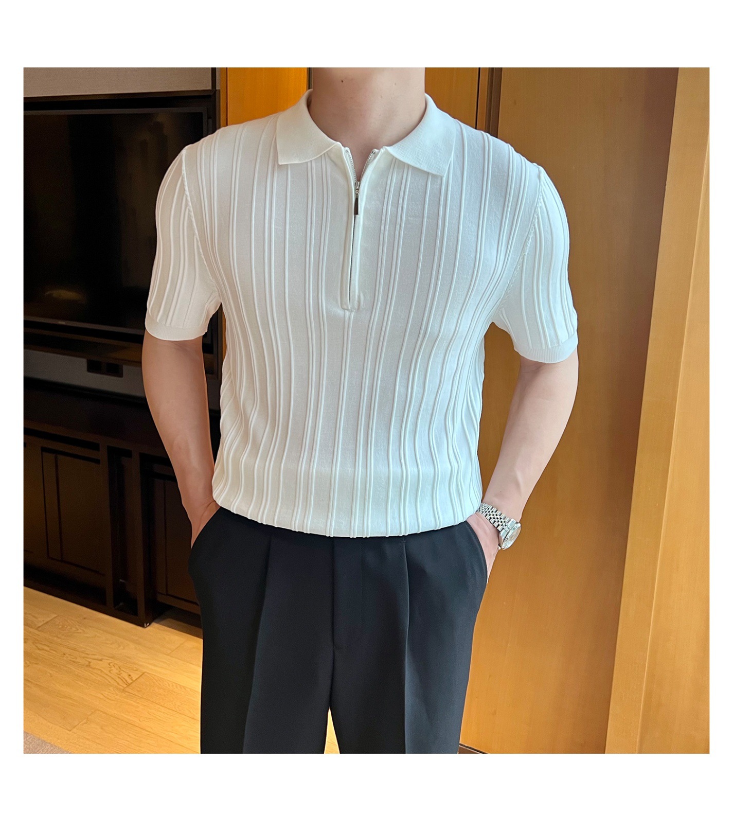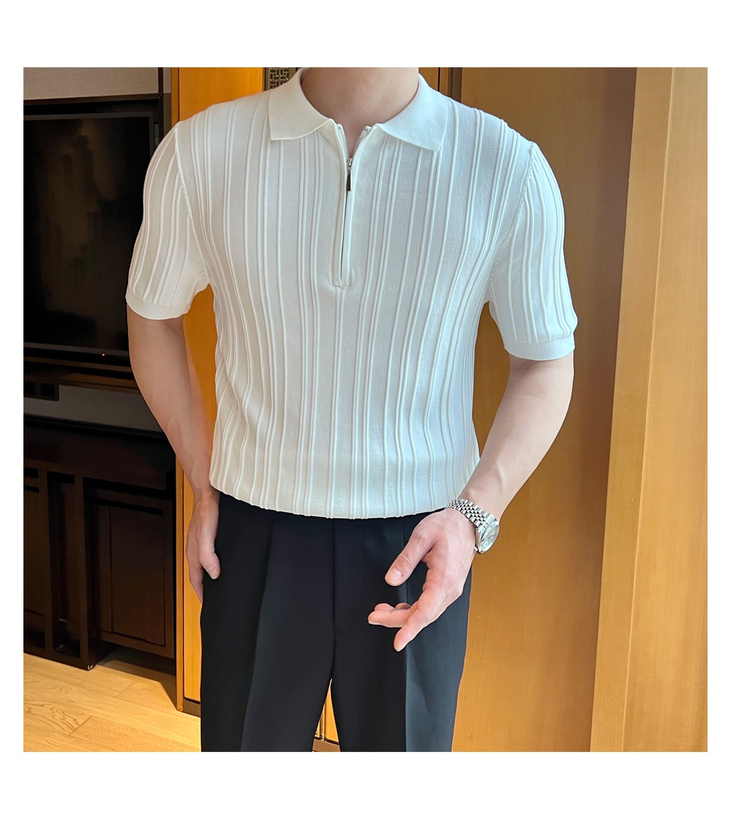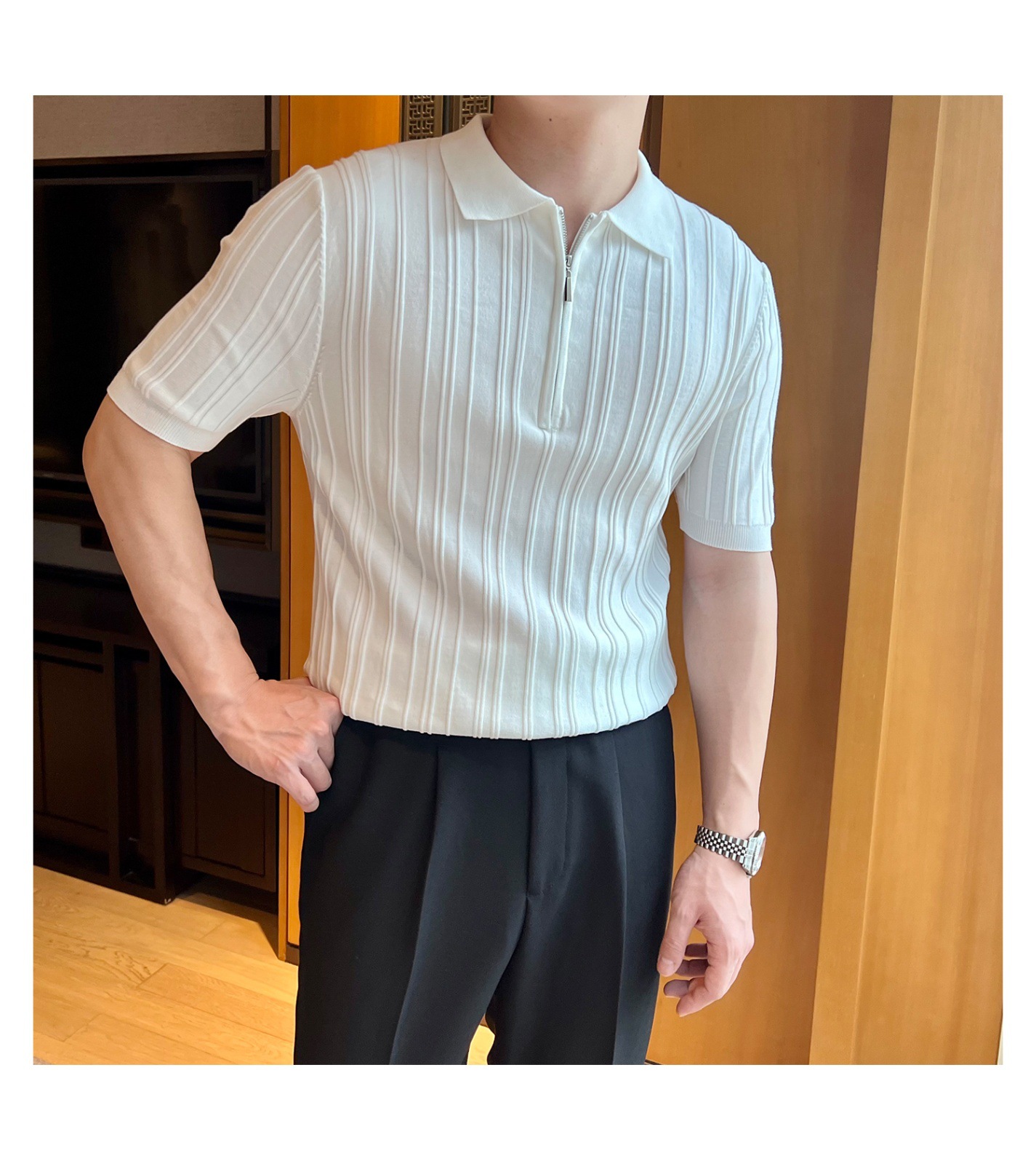 Casual Zipper Short Sleeve Men's Retro Elegant Jacquard Lapel