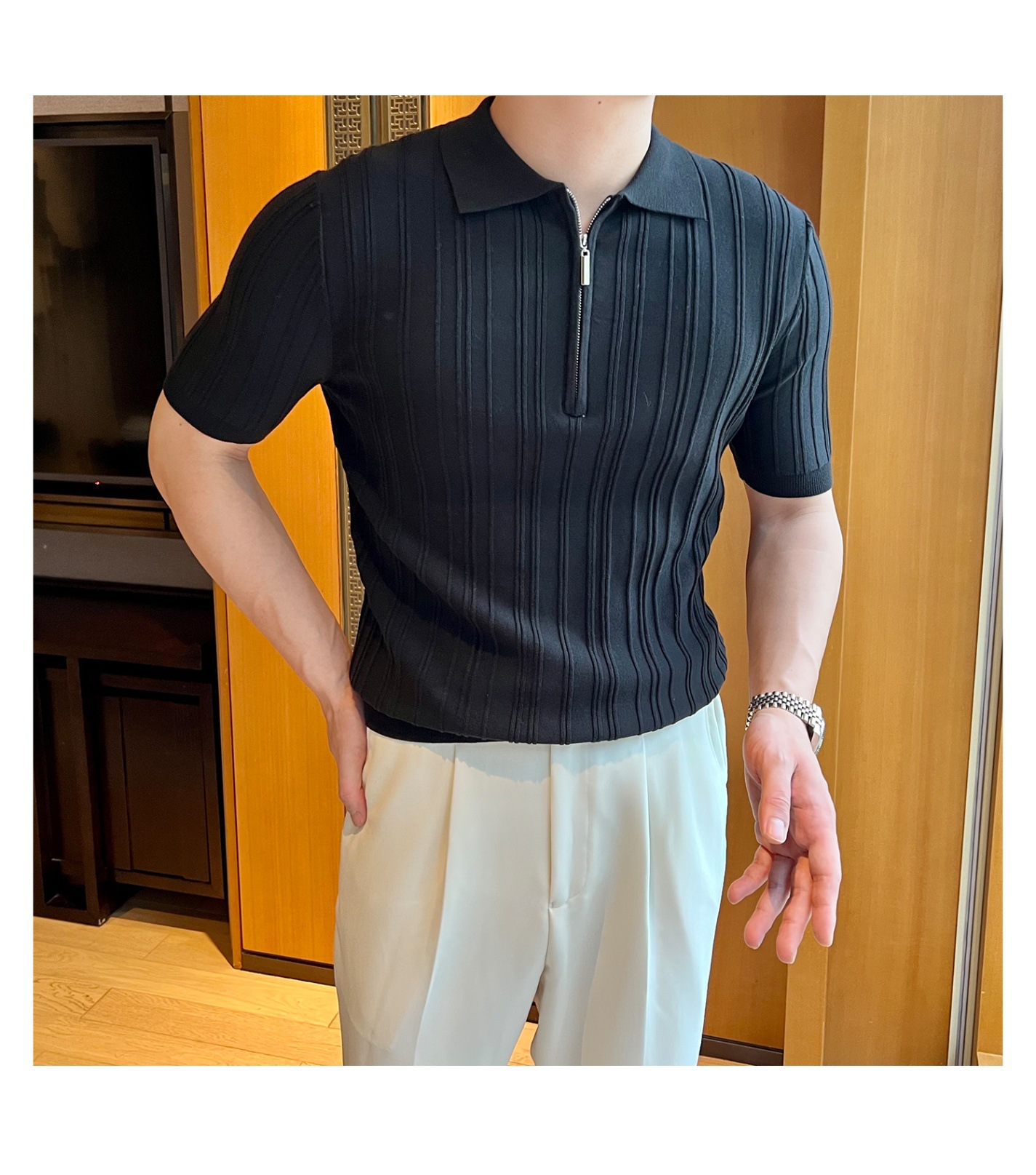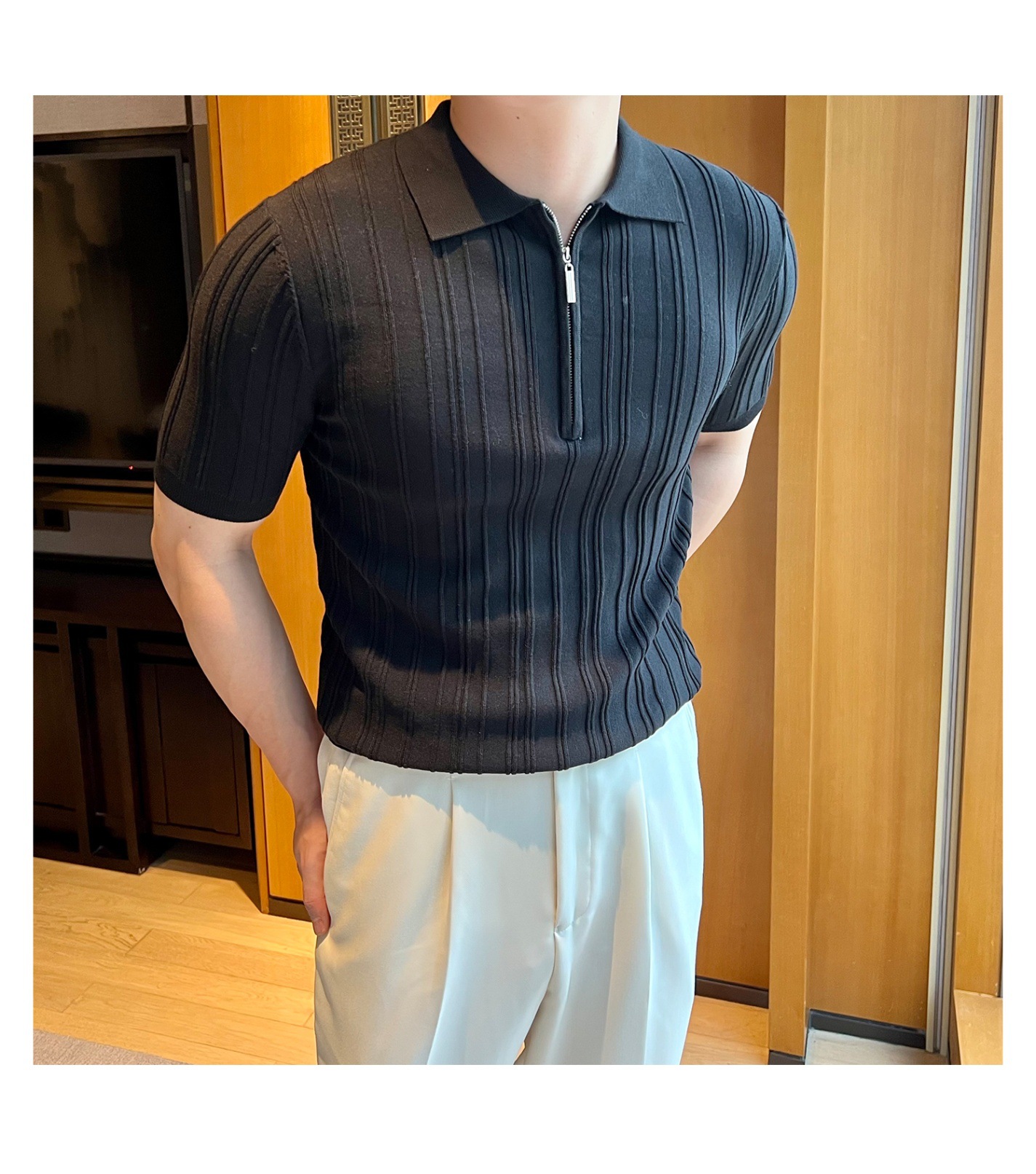 • Casual Zipper Short Sleeve Men's Retro Elegant Jacquard Lapel