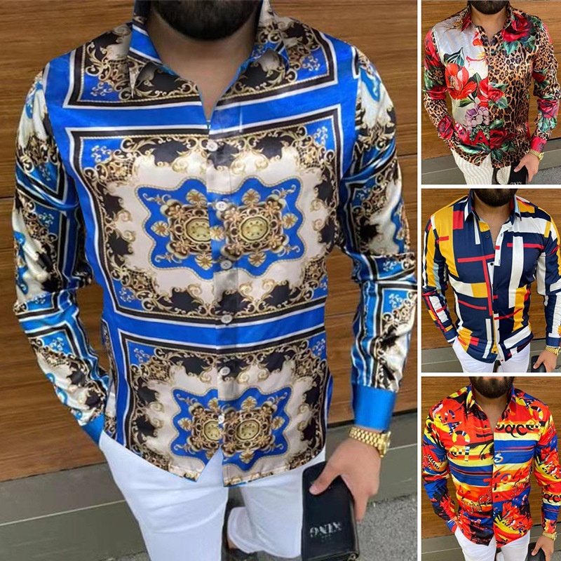 Long Sleeve Shirt Printed Plus Size Men's Top Shirt Cardigan