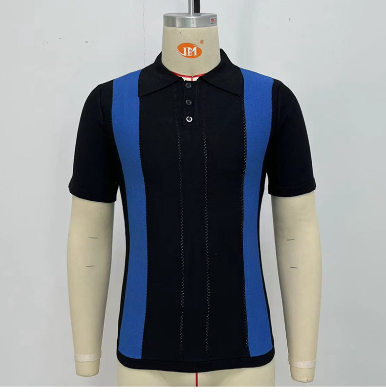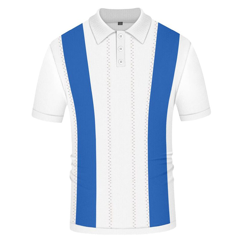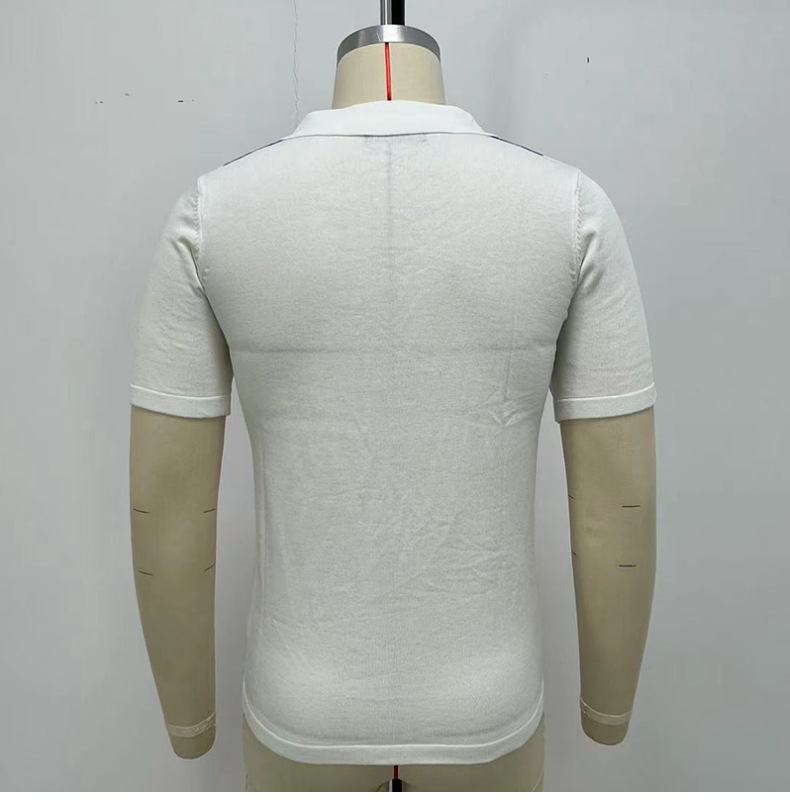 Men's White Striped Slim-fit Short-sleeved Sweater