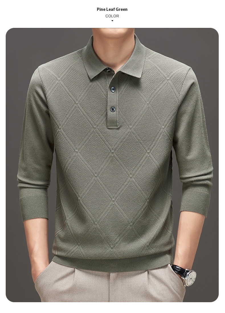 Knitwear Polo Collar Solid Color Long Sleeve Men's Sweater