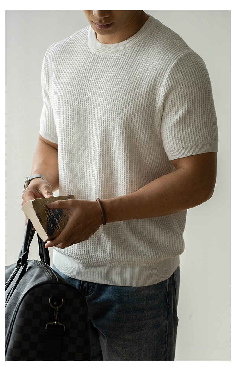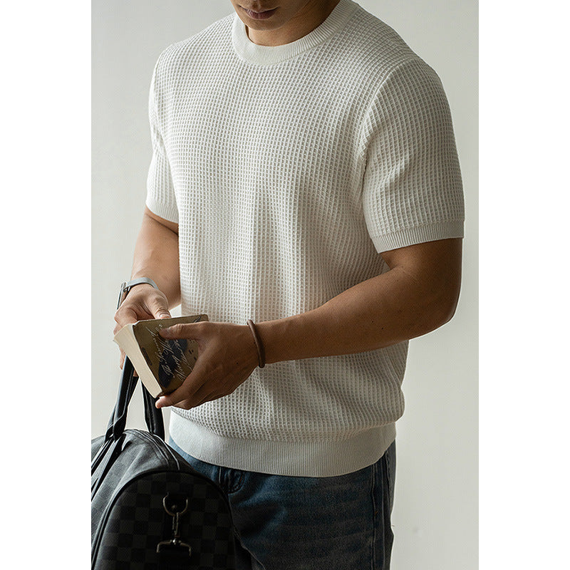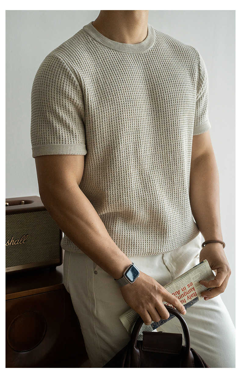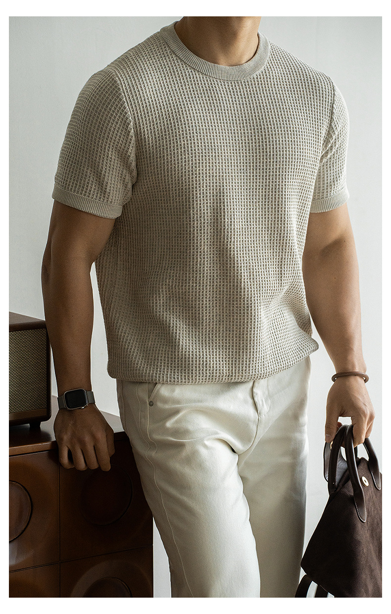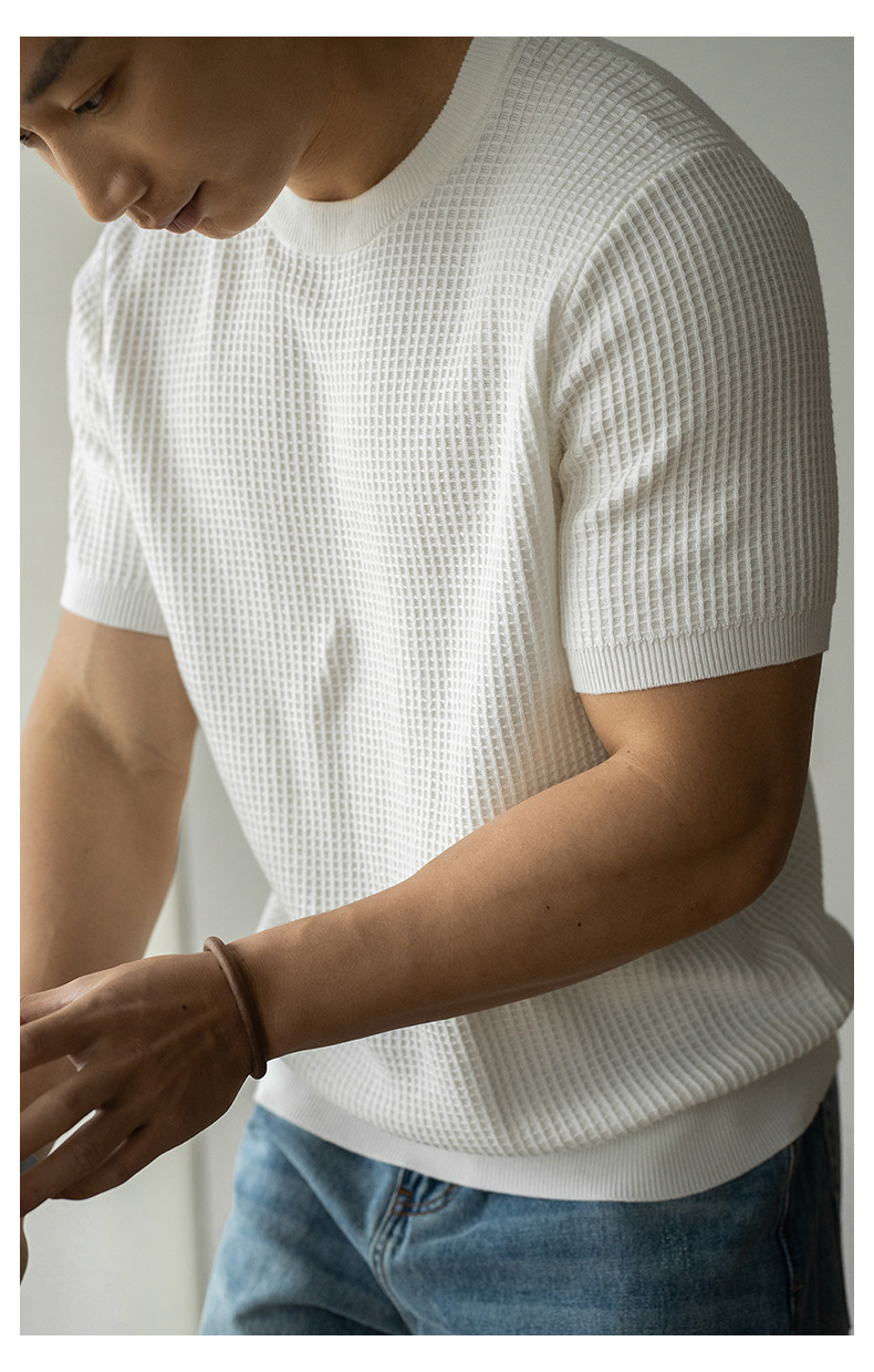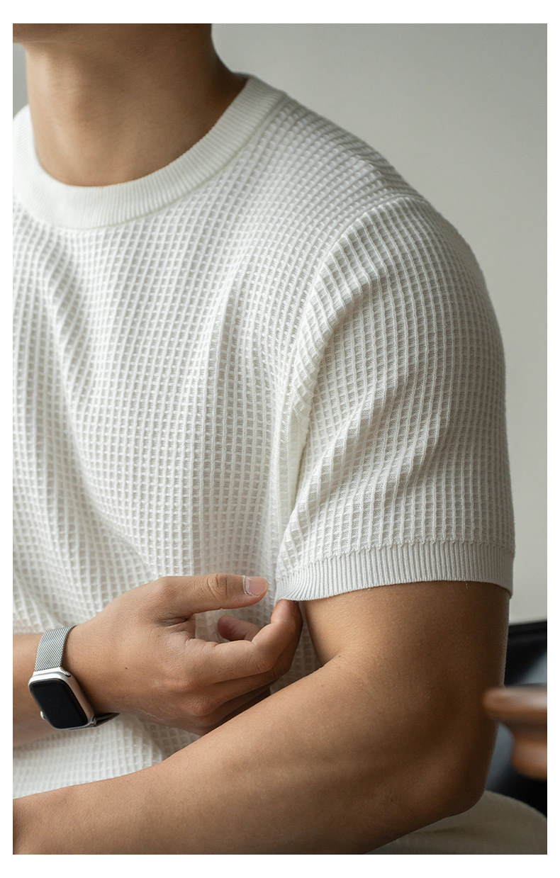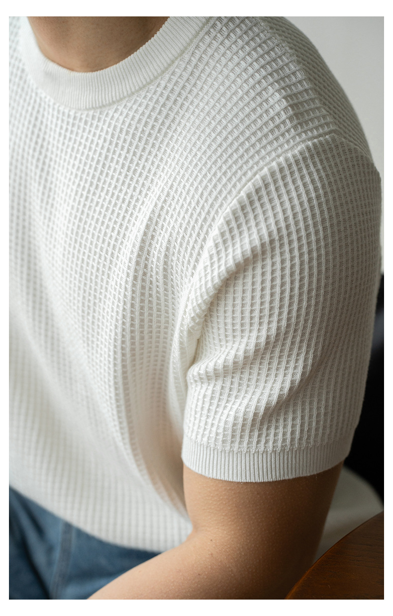 American Retro Waffle Drape Round Neck Short Sleeve T-shirt