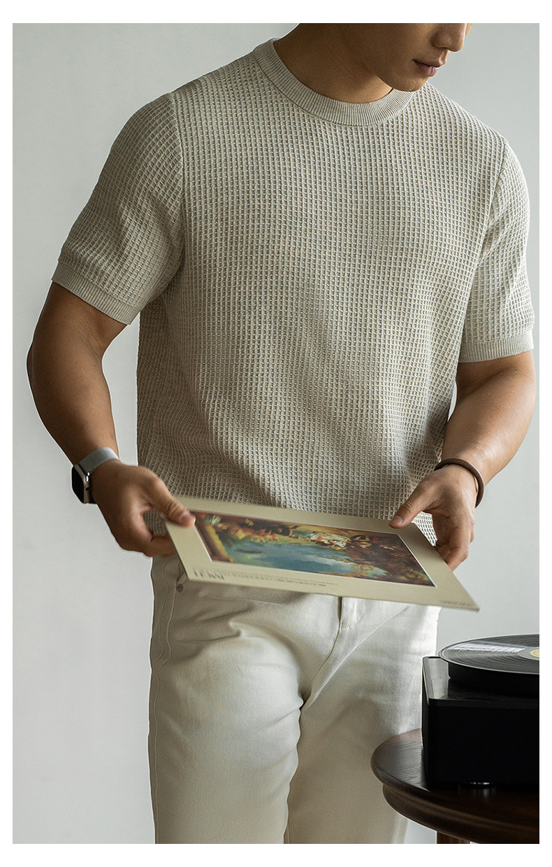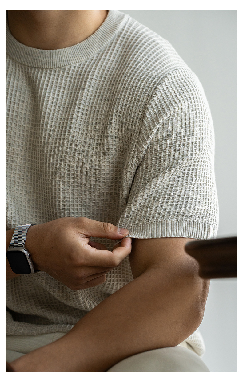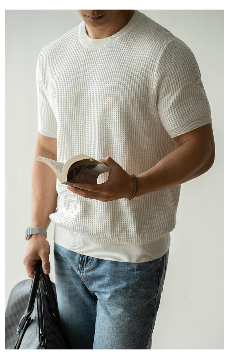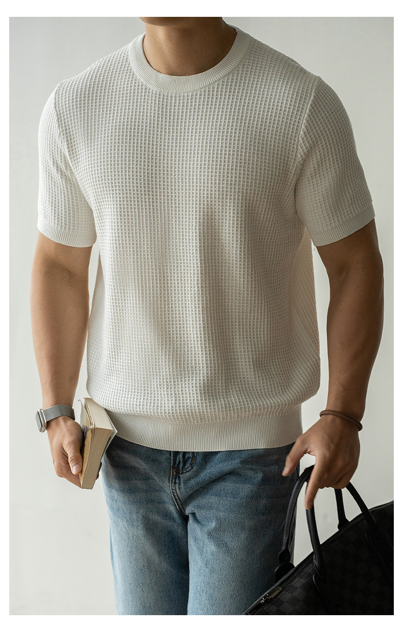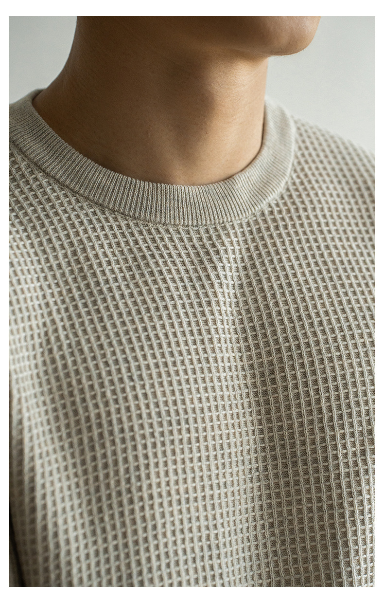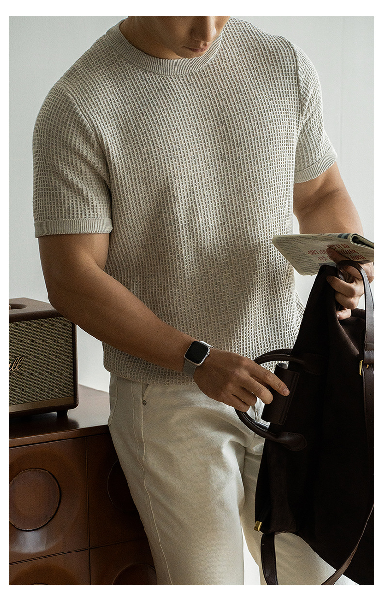 American Retro Waffle Drape Round Neck Short Sleeve T-shirt
