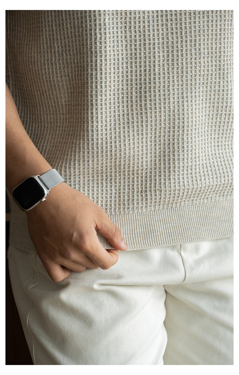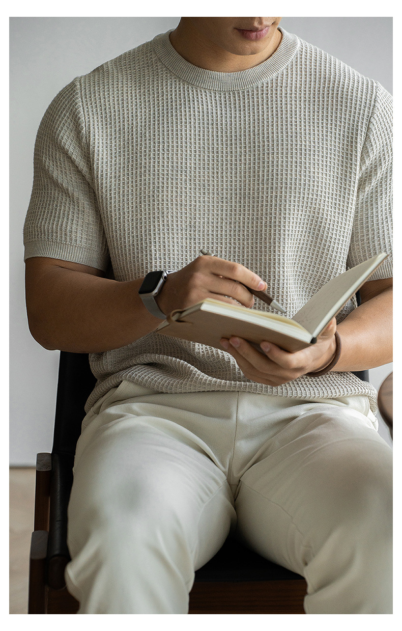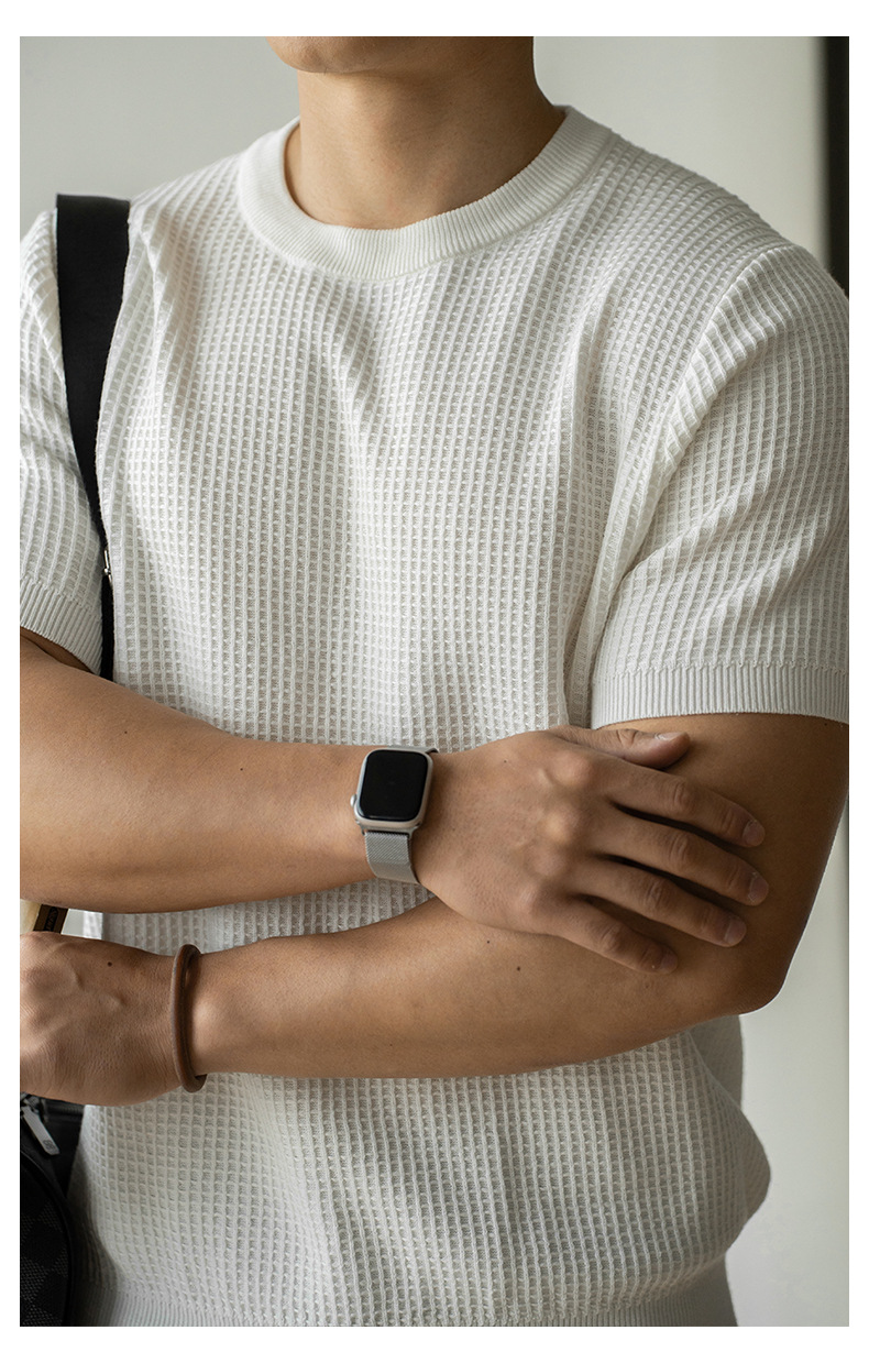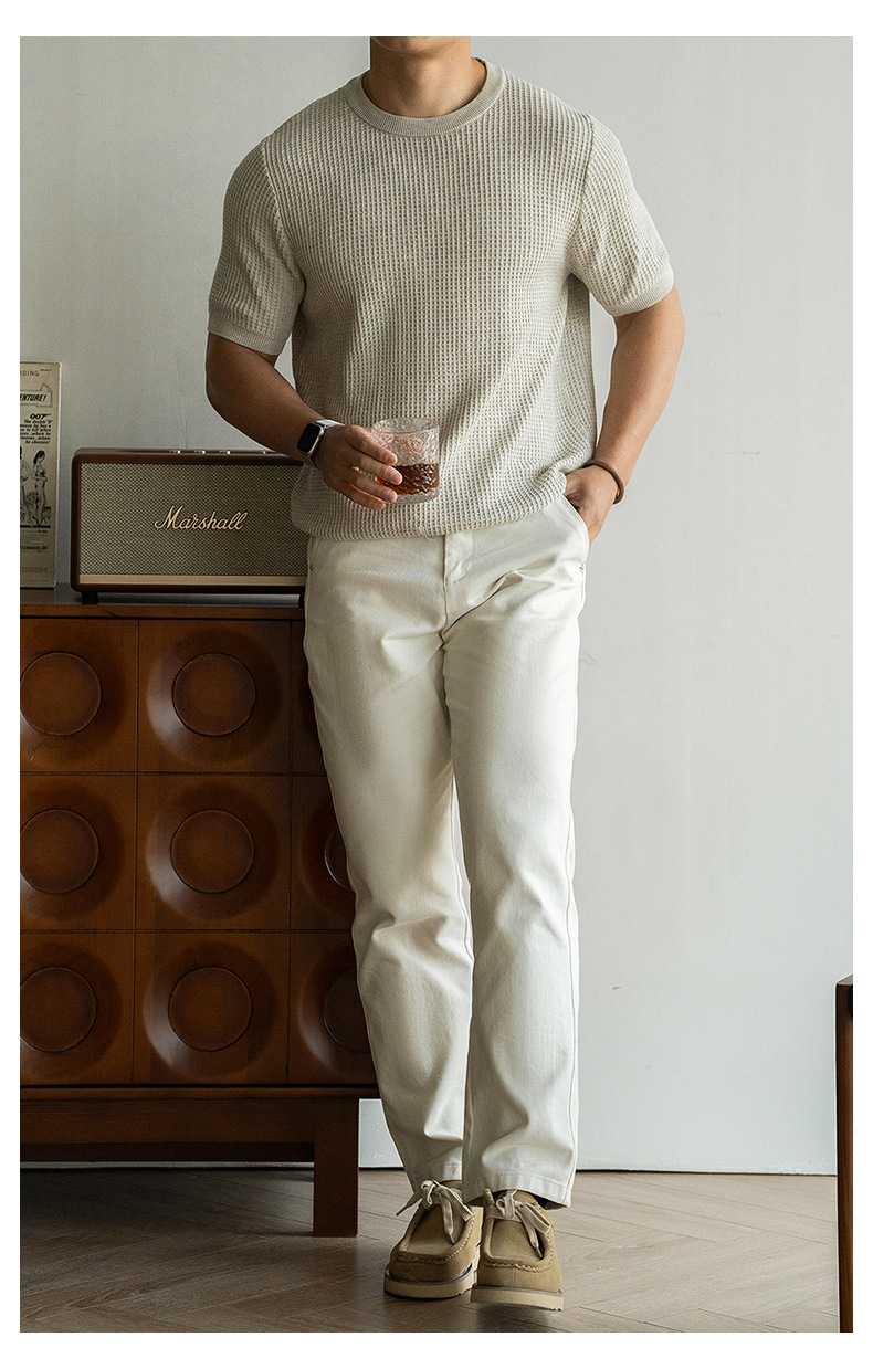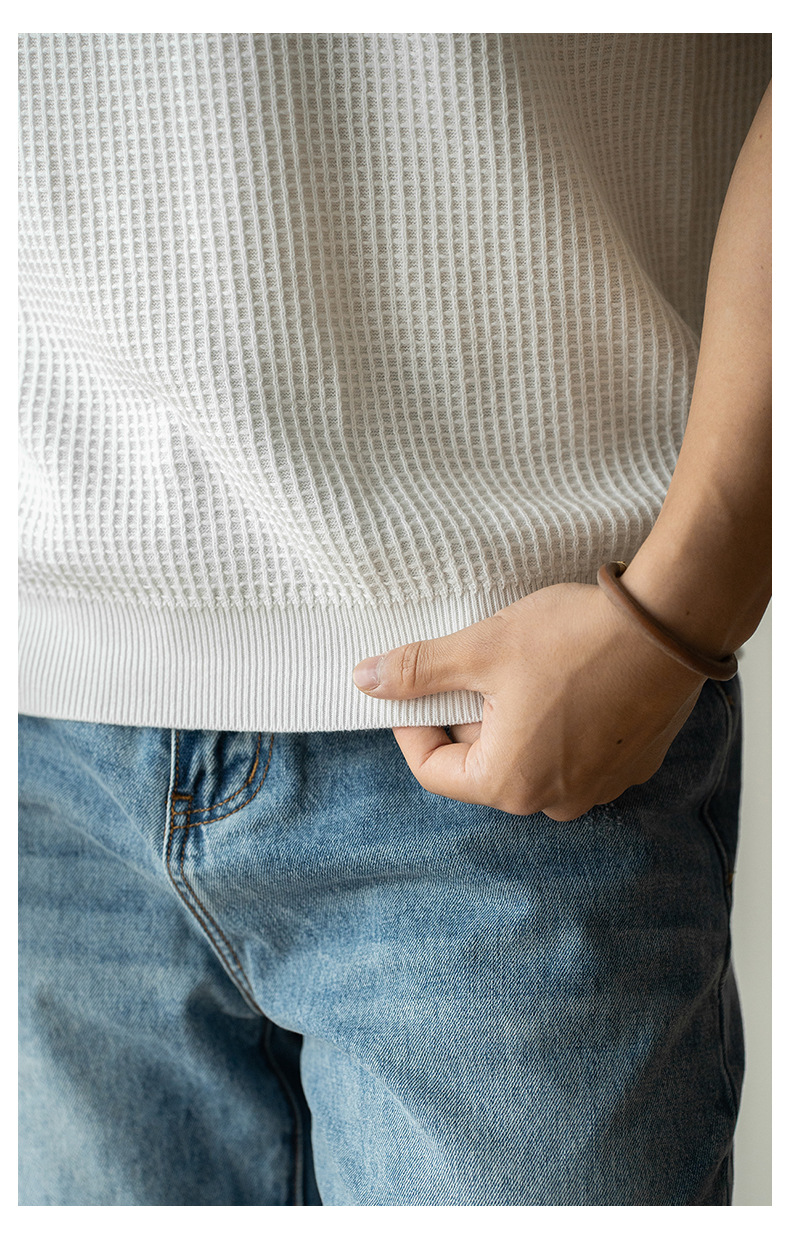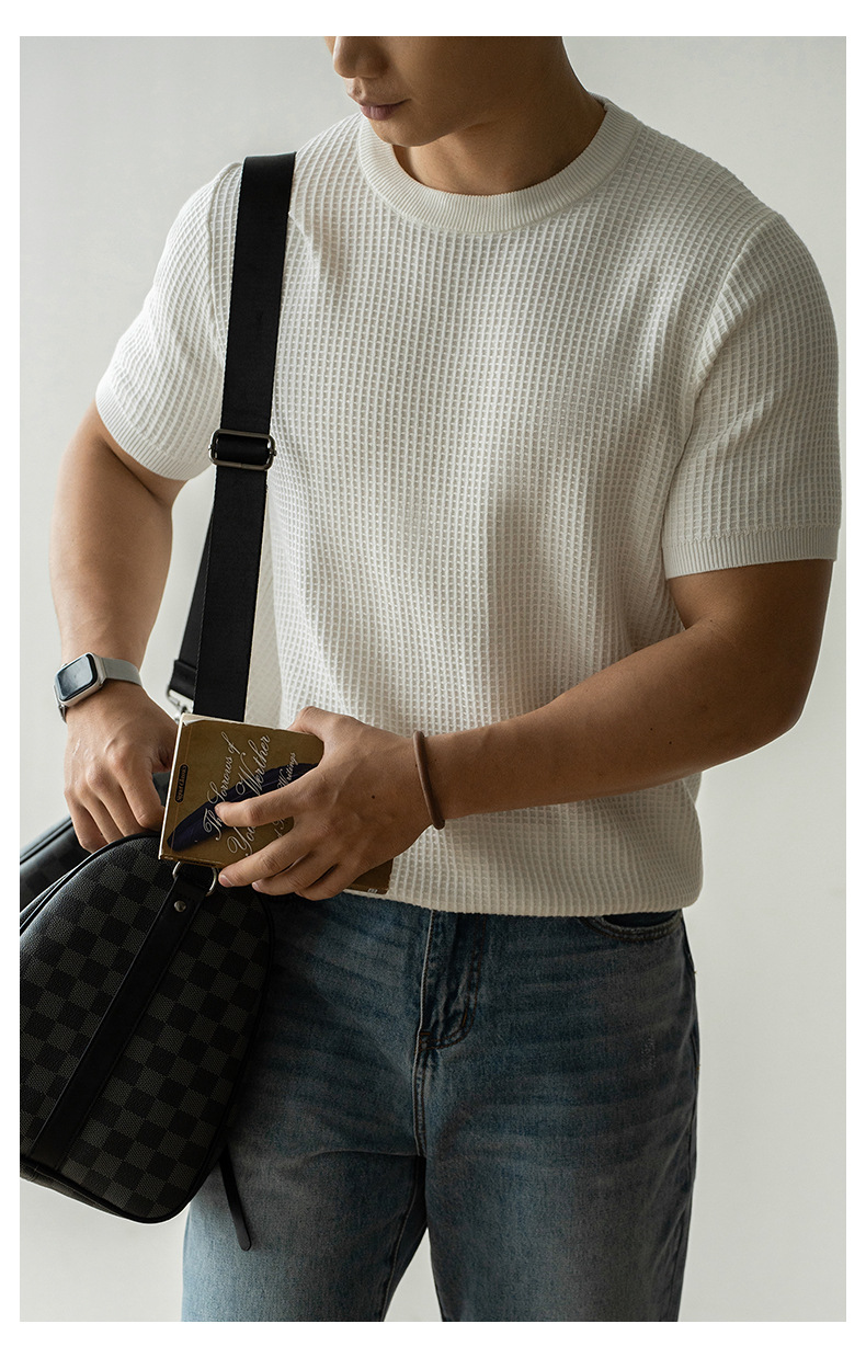 American Retro Waffle Drape Round Neck Short Sleeve T-shirt