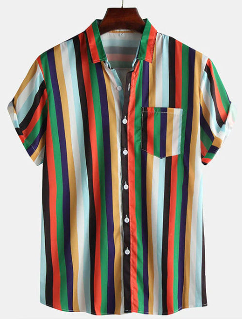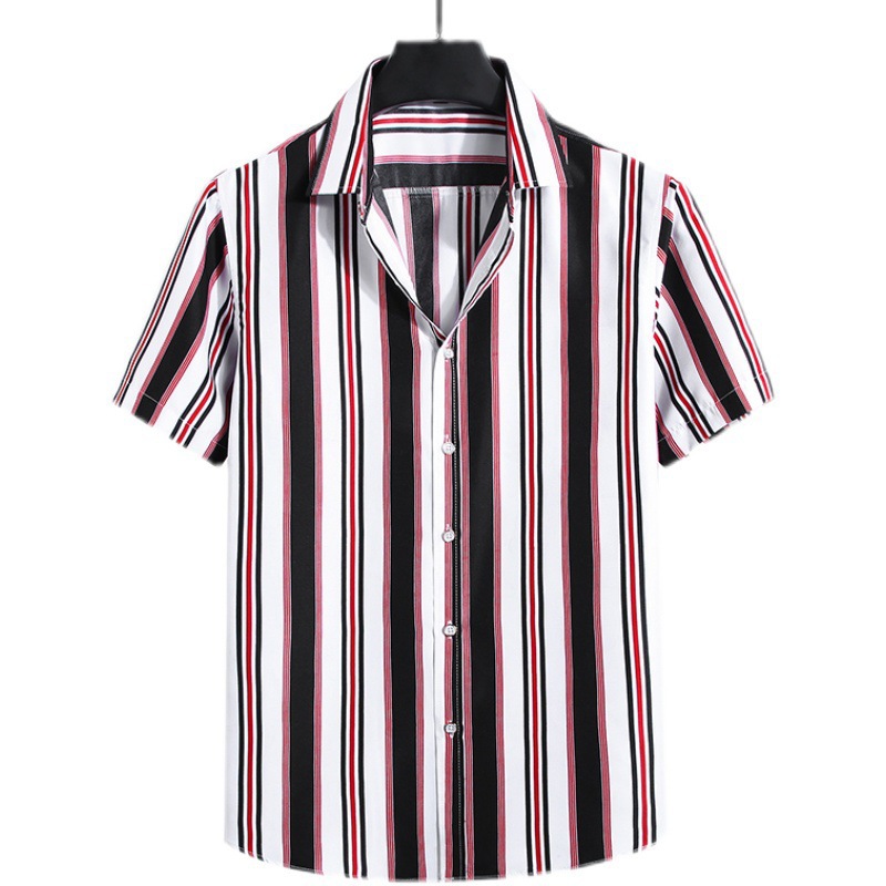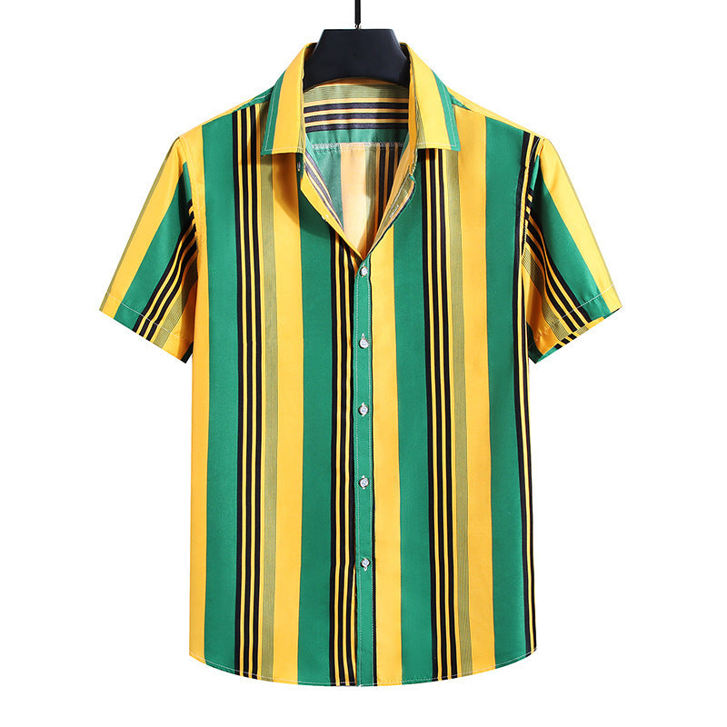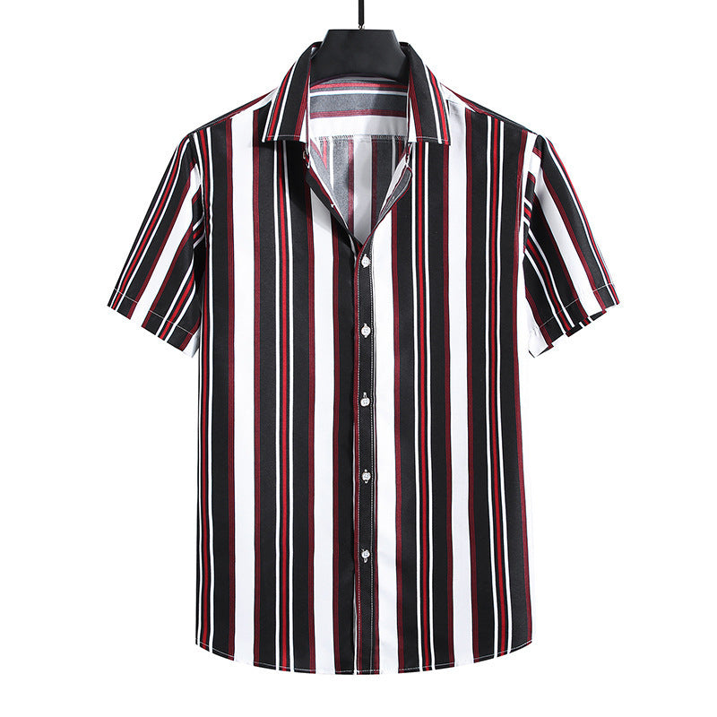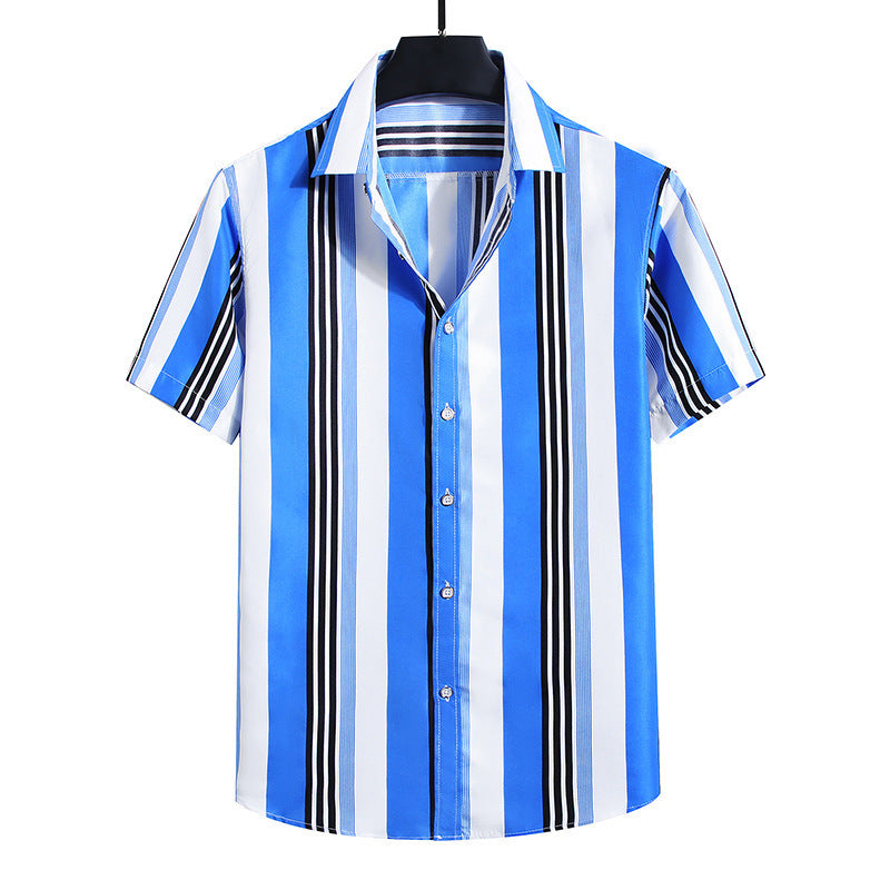 • Men's Fashion Loose Striped Short Sleeve Shirt Top