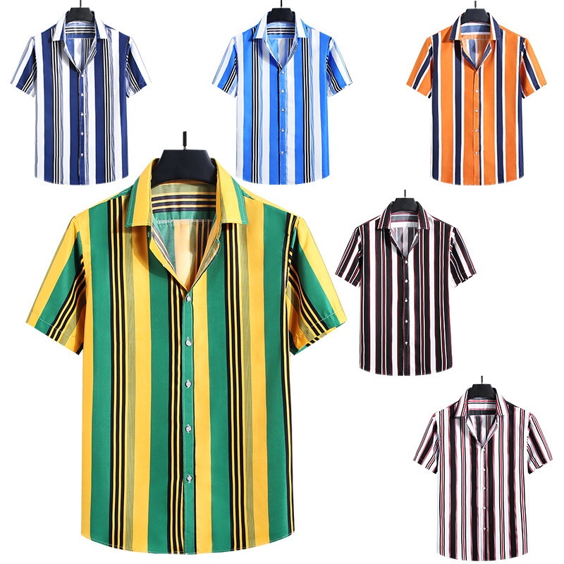 Men's Fashion Loose Striped Short Sleeve Shirt Top