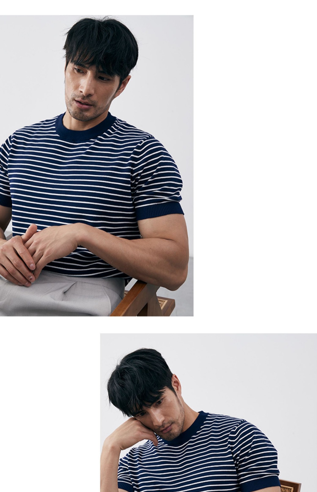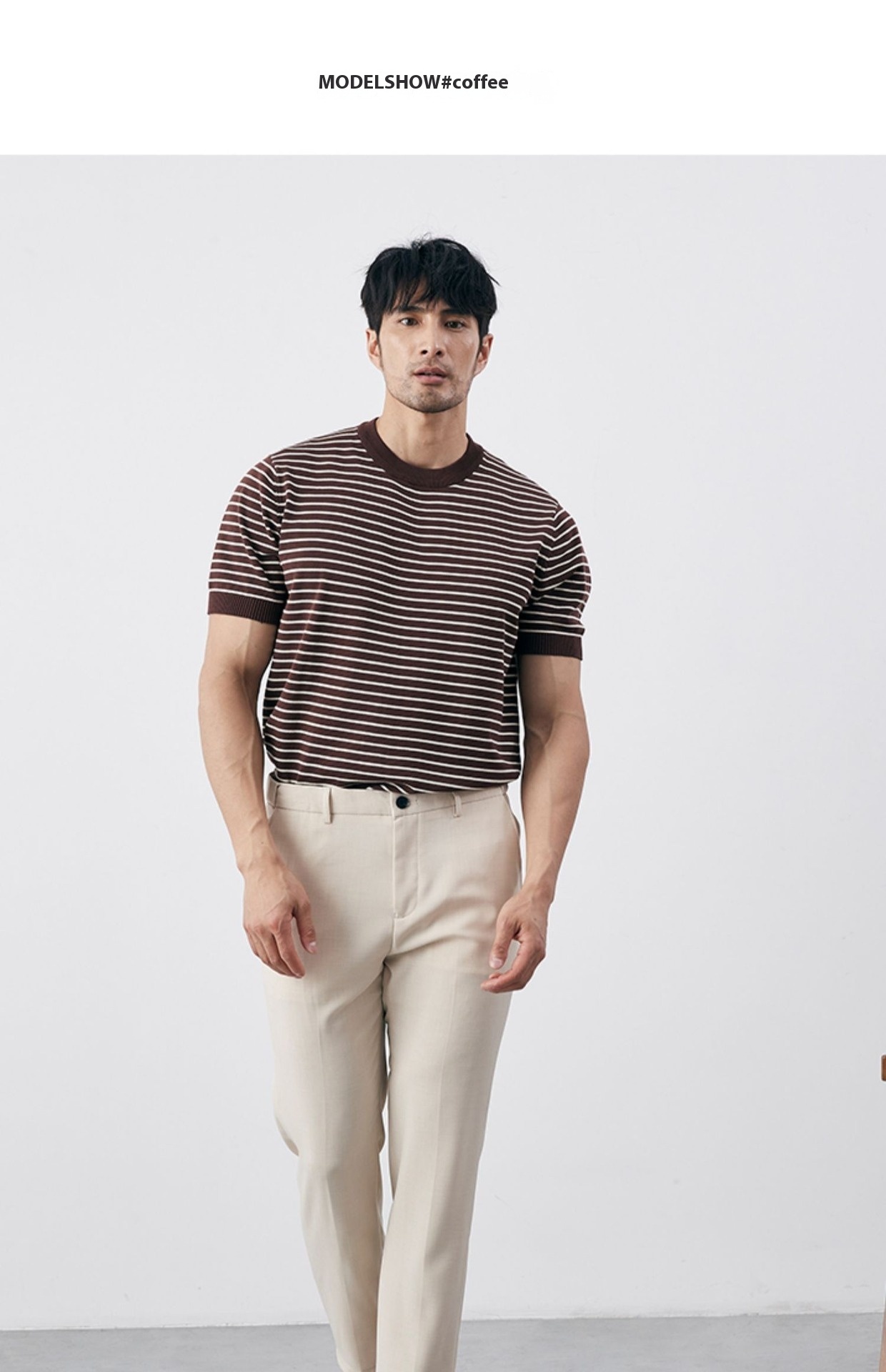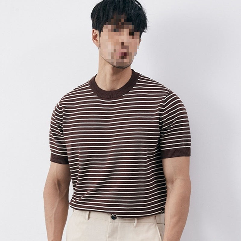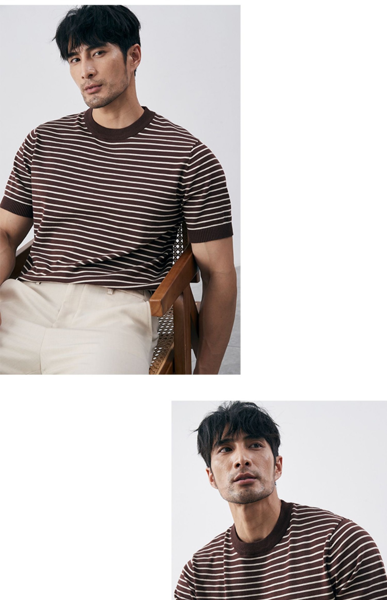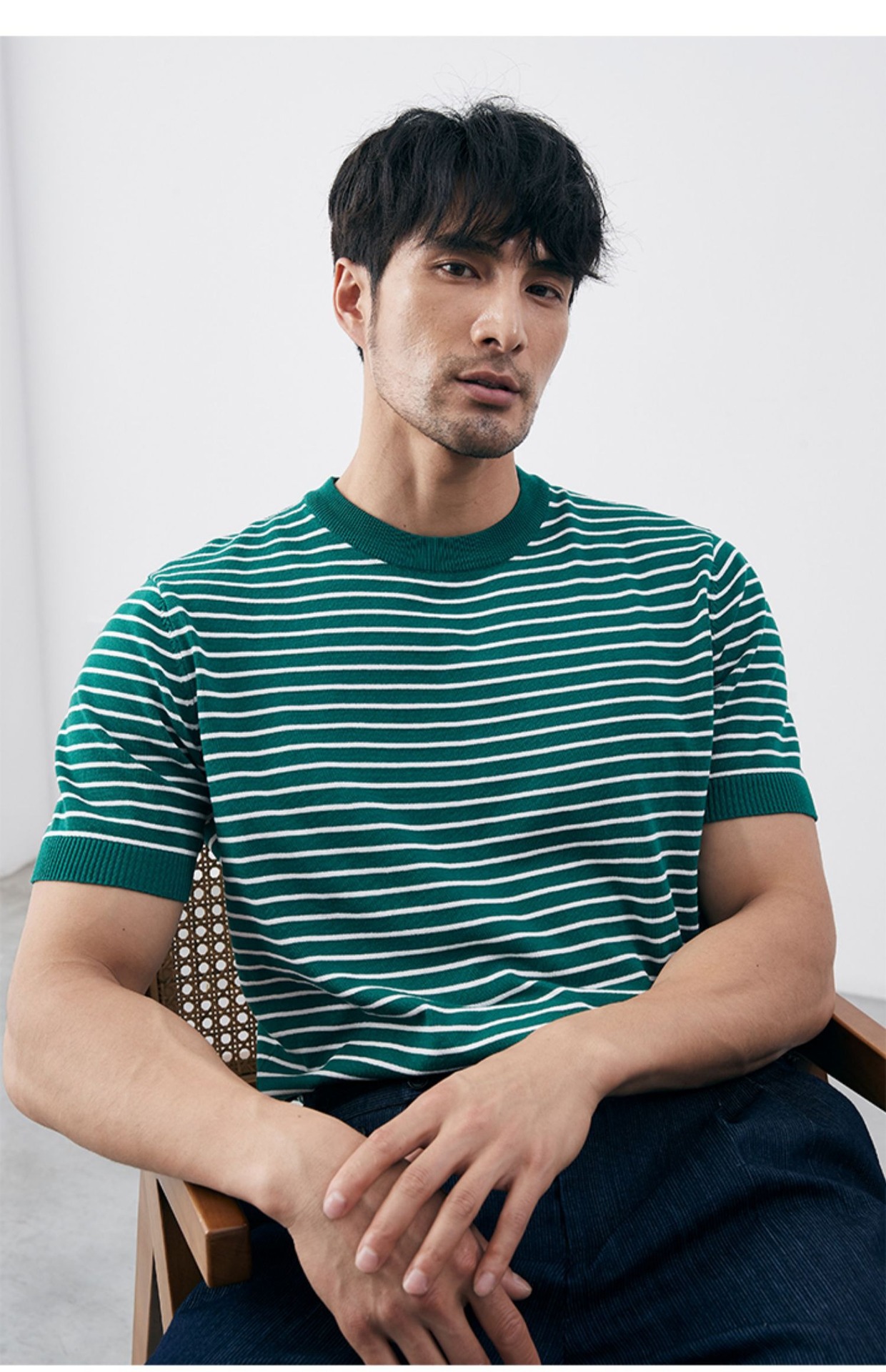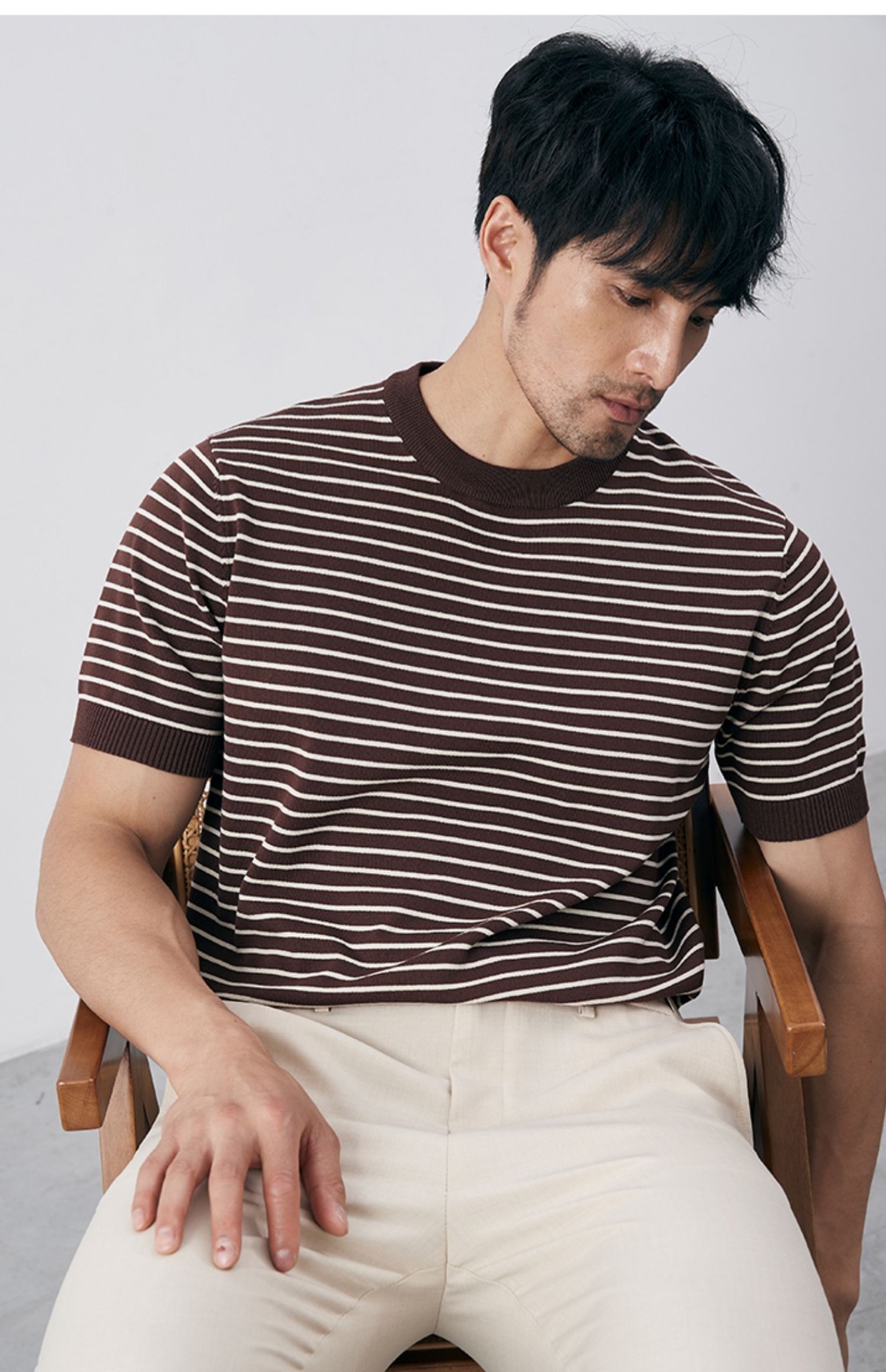 • Men's High-grade Casual Striped Round Neck Knitted T-shirt