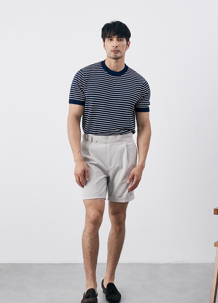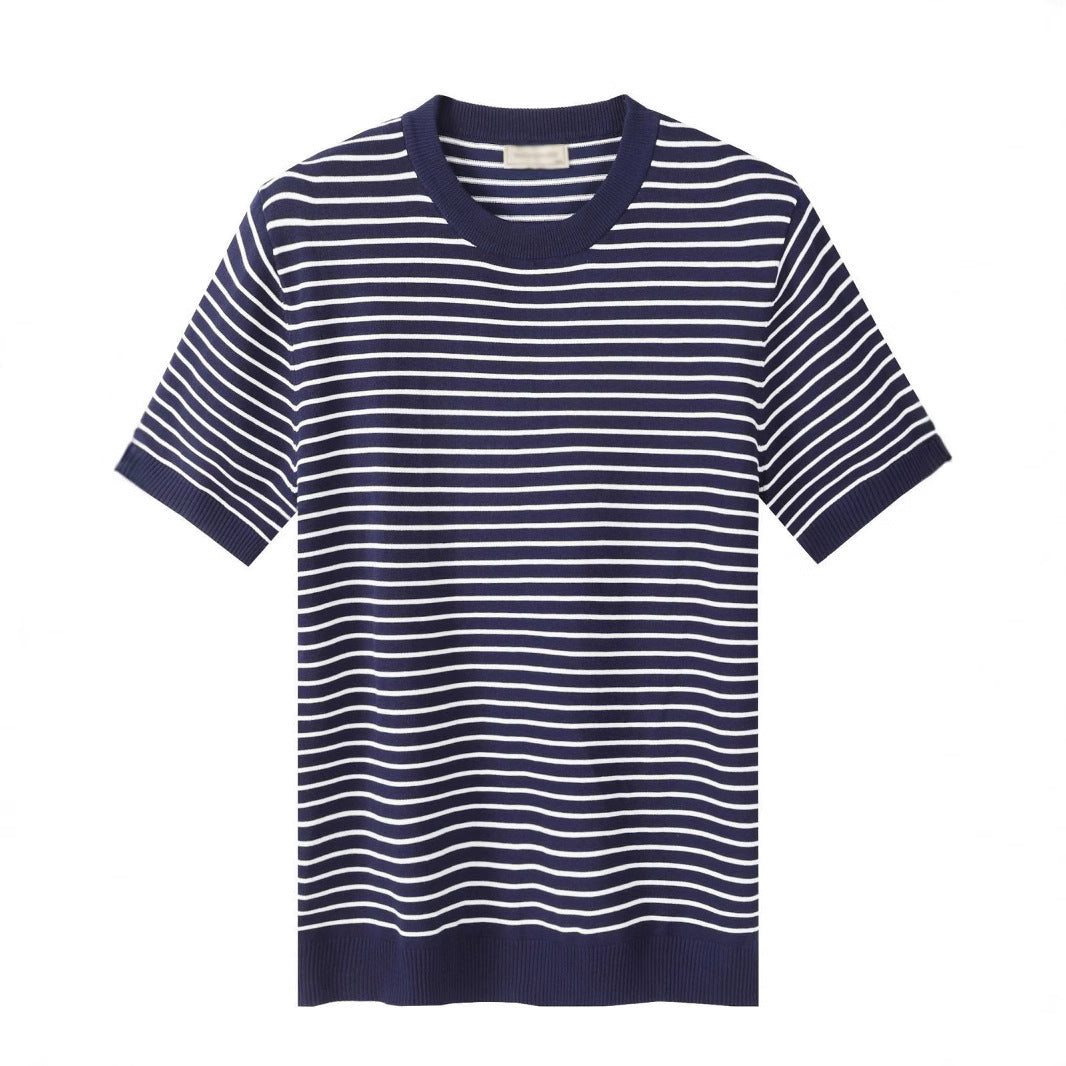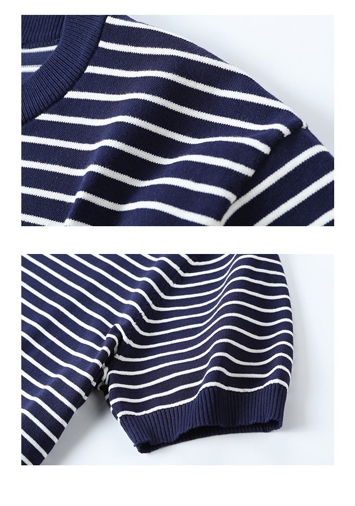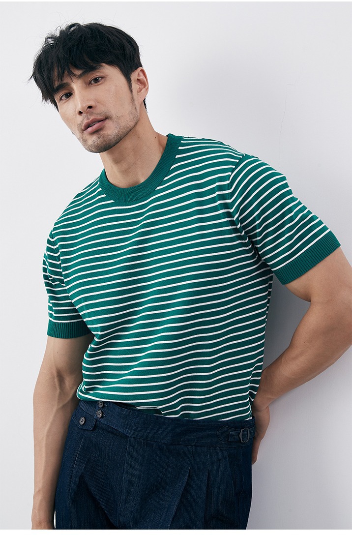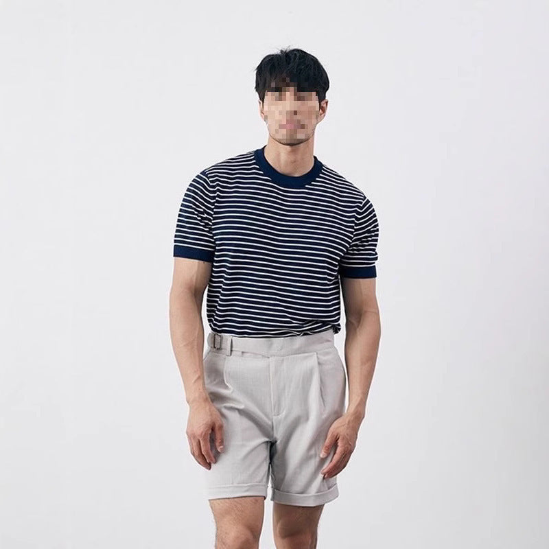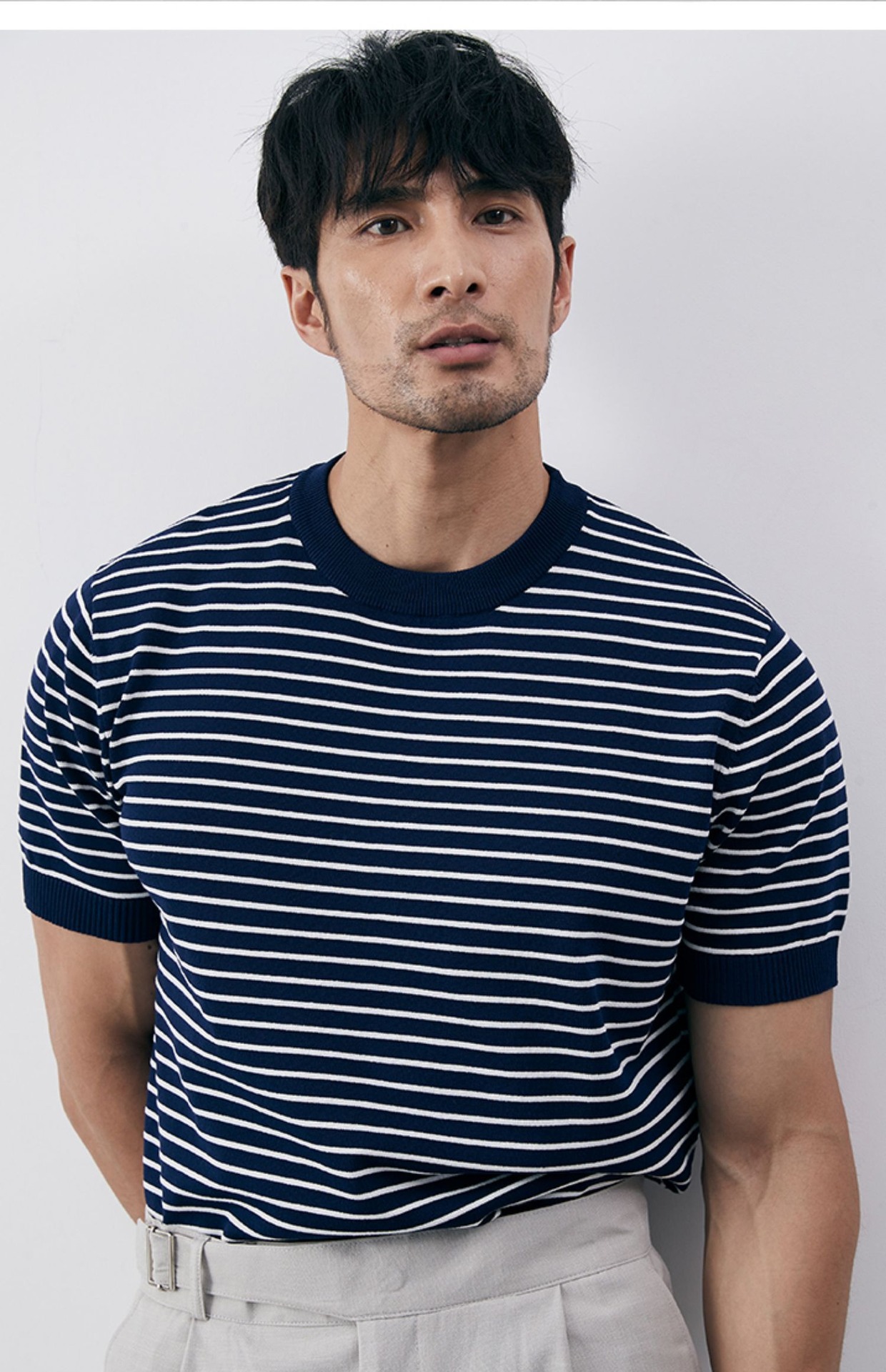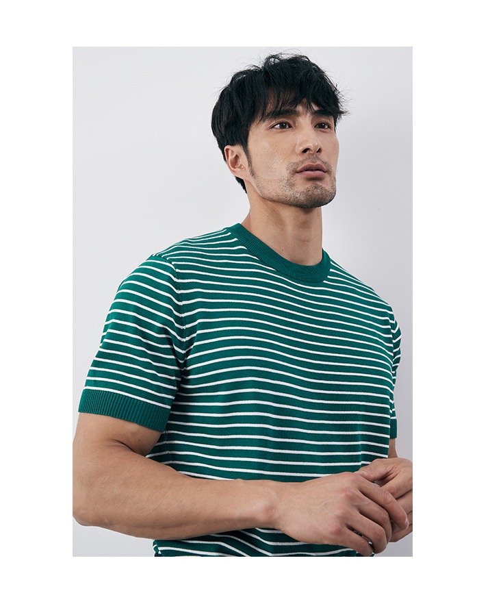 • Men's High-grade Casual Striped Round Neck Knitted T-shirt